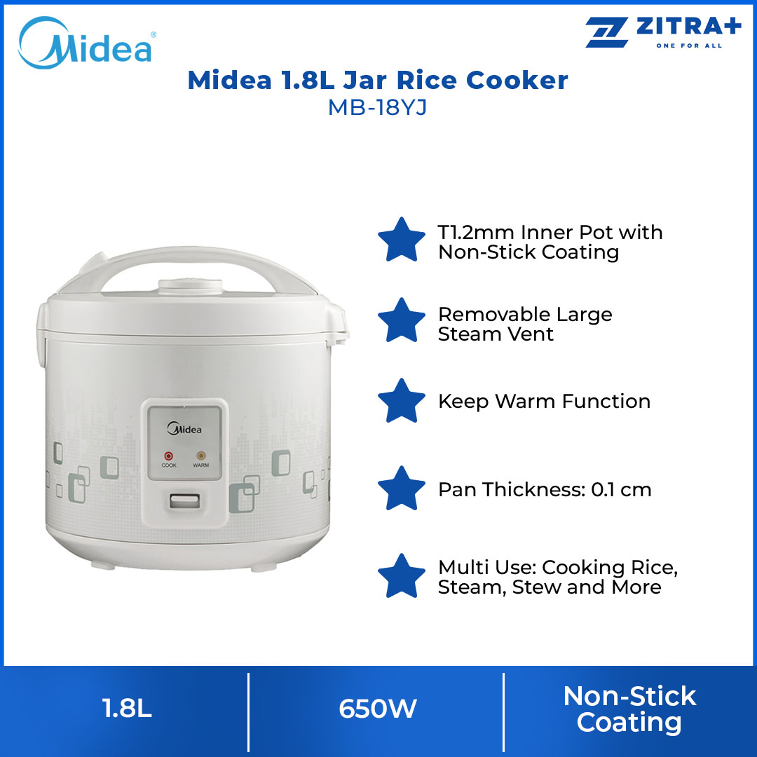 Midea 1.8L Jar Rice Cooker MB-18YJ | T1.2mm Inner Pot with Non-Stick Coating | Removable Large Steam Vent | Rice Cooker with 1 Year Warranty