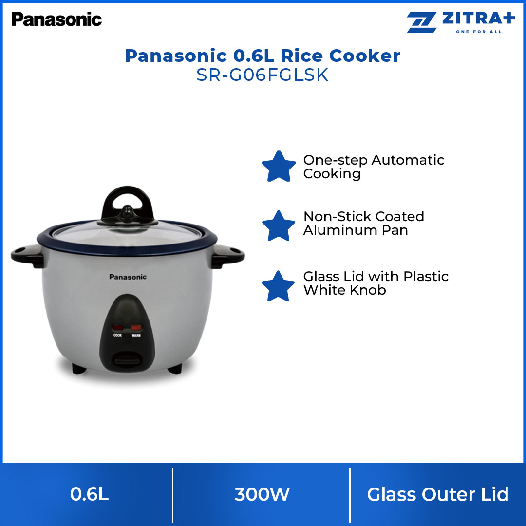 Panasonic 0.6L Rice Cooker SR-G06FGLSK | Glass Outer Lid | 300W Power Consumption | Automatic Cooking | Rice Cookers with 1 Year Warranty