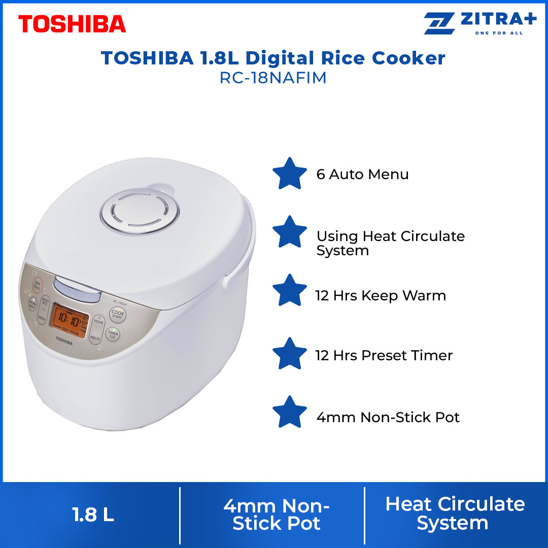 TOSHIBA 1.8L Digital Rice Cooker RC-18NAFIM | 6 Auto Menu | Heat Circulate System Used | Rice Cooker with 1 Year Warranty