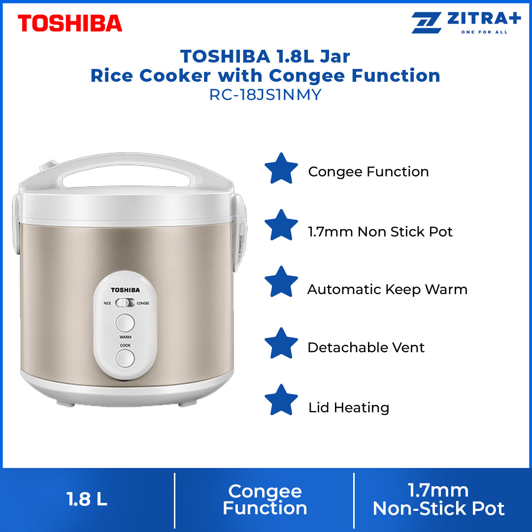 TOSHIBA 1.8L Jar Rice Cooker RC-18JS1NMY | 1.7mm Inner Pot | Non-Stick Coating | Rice Cooker with 1 Year Warranty