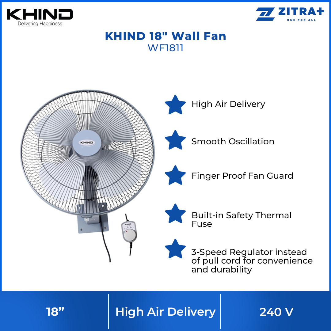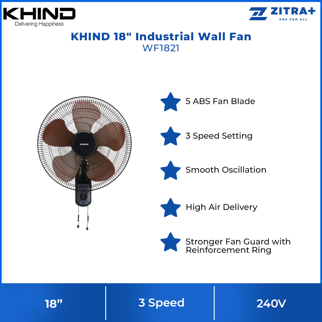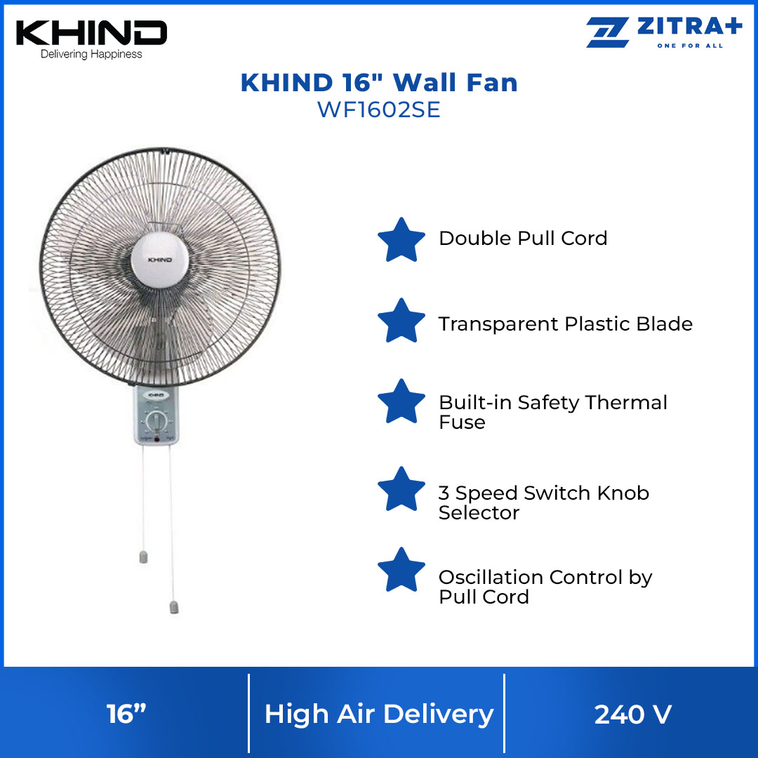 SHARP 16" Wall Fan PJW169GY | 3 Blades | 3 Adjustable Speed | 5 Star Energy Rating | Wall Fan with 1 Year Warranty