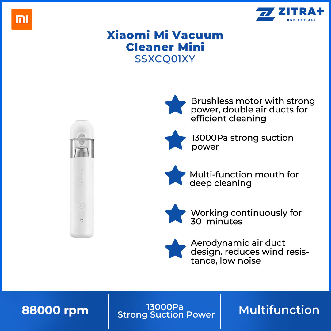 Xiaomi Mi Vacuum Cleaner Mini SSXCQ01XY | Portable | Powerful | Brushless Motor | One-click Dust Disposal | Vacuum Cleaner Mini with 1 Year Warranty