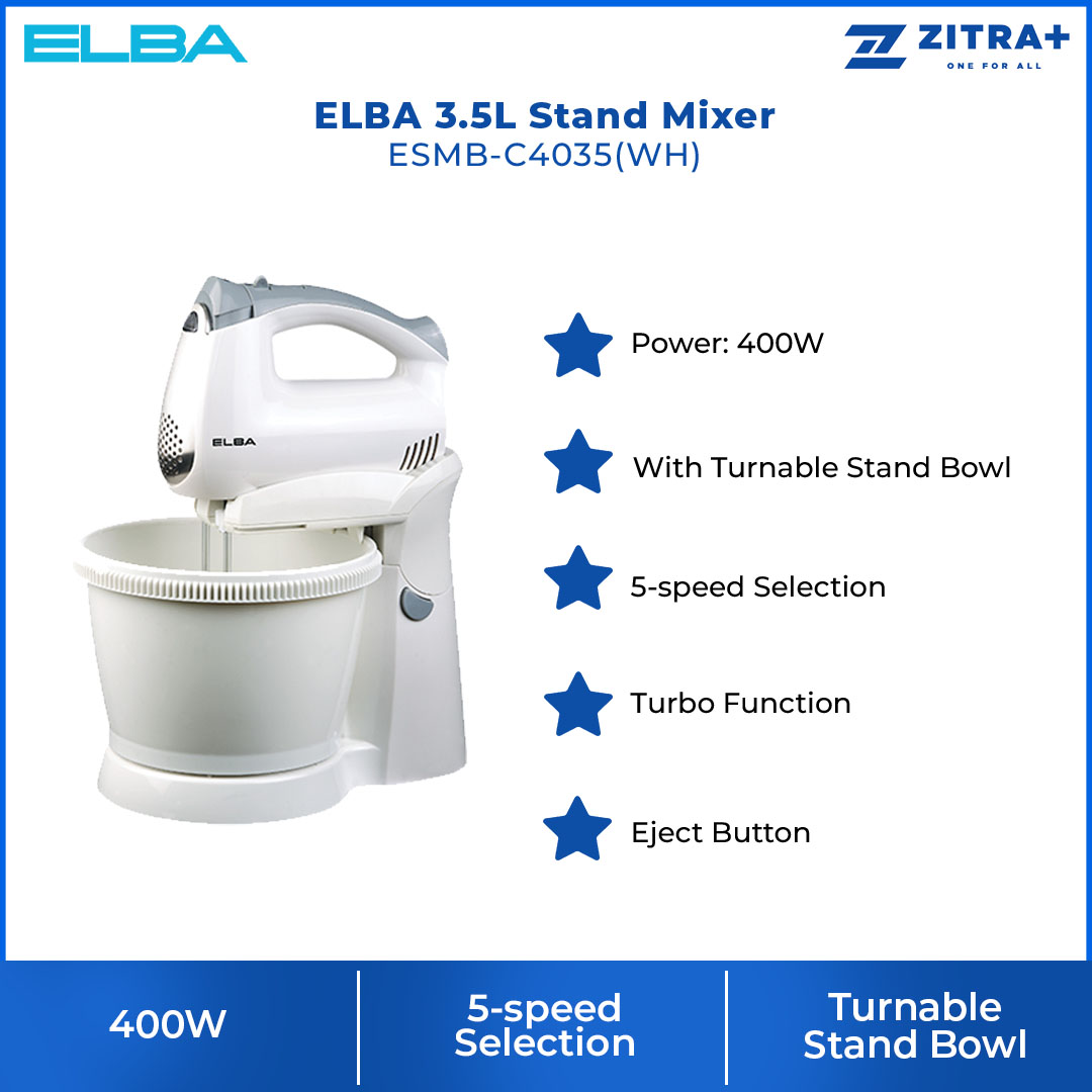 ELBA 4.2L Stand Mixer ESMB-9925S | Included Beaters, Dough Hooks, Stainless Steel Stand Bowl | Turbo Function | Eject Function | Stand Mixer with 1 Year Warranty