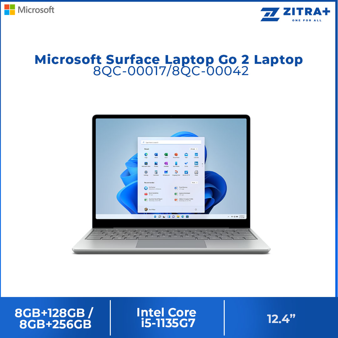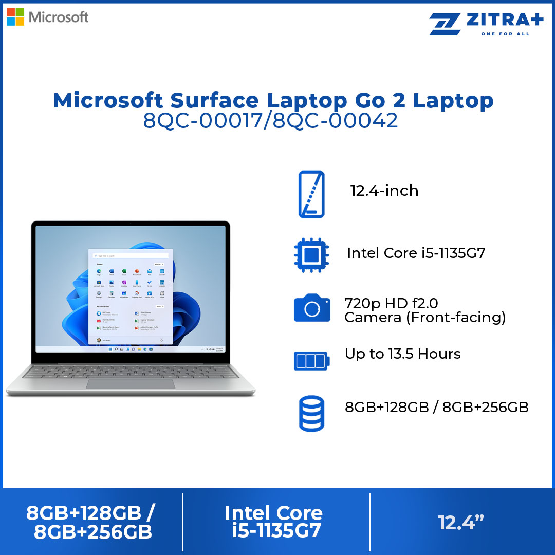 Microsoft Surface Laptop Go 2 Laptop 8QC-00017/8QC-00042 (Intel Core i5-1135G7/ 8GB+128GB SSD/8GB+256GB SSD/ 12.4-inch HD/ W11) Windows 11 Home | The lightest Surface Laptop | Swipe and Pinch with Touch | Laptop with 1 Year Warranty
