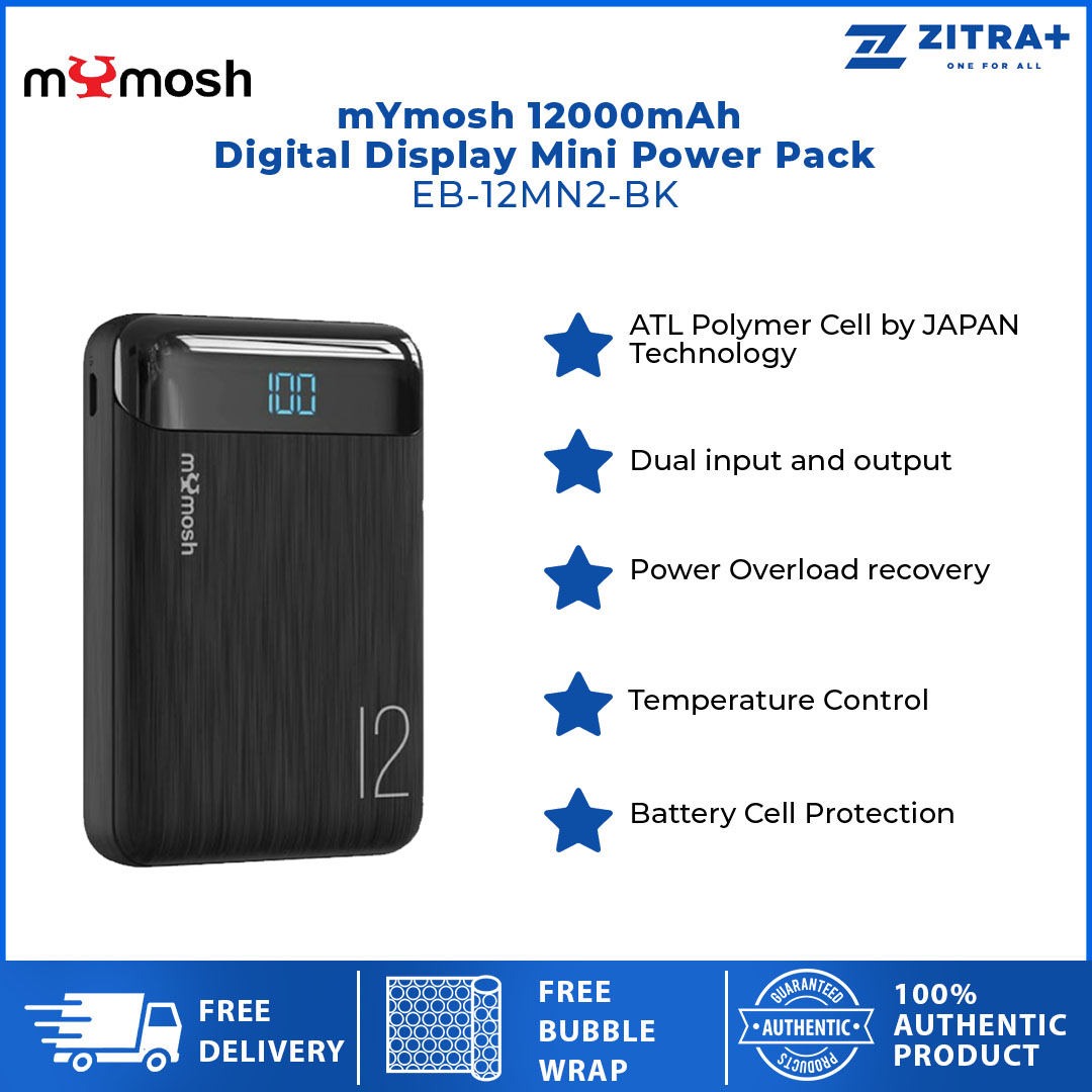 mYmosh 12000mAh Digital Display Mini Power Pack | Battery Cell Protection | Dual Input and Output | Digital LCD Display | Temperature Control | Transport Safety Certified | Powerbank with 1 Year Warranty