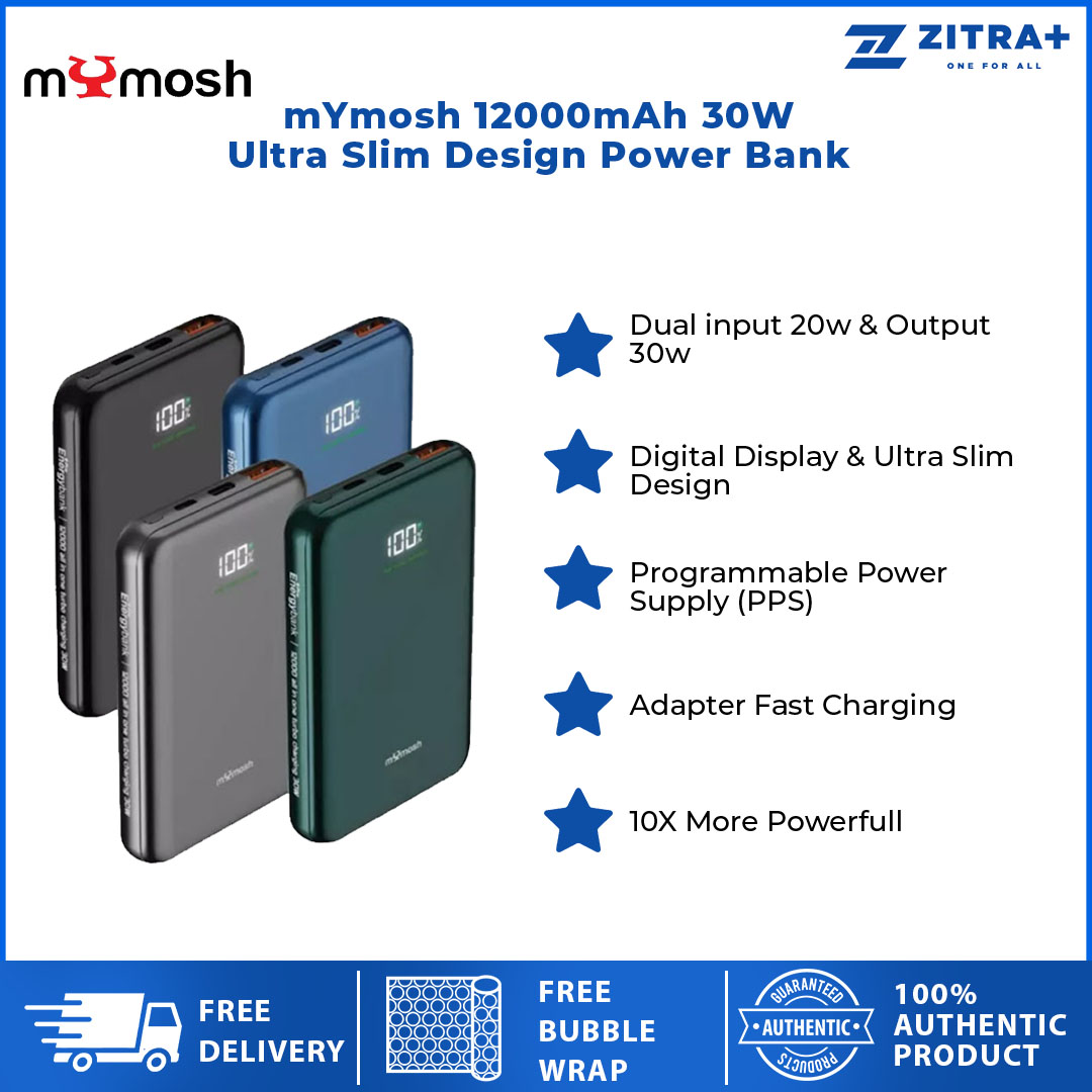 mYmosh 12000mAh 30W Ultra Slim Design Power Bank | Fast Charging | Ultra-Long Cycle Life | Qualcomm Quick Charge 5.0 | Accurately Track Of Remaining Power | Powerbank with 1 Year Warranty