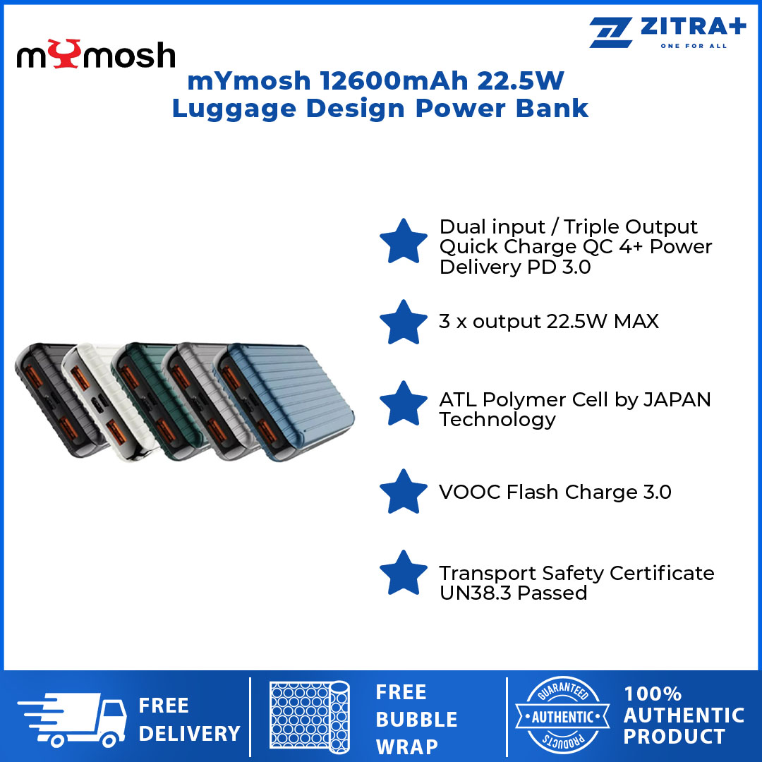 mYmosh 12600mAh 22.5W Luggage Design Power Bank | Digital Display | Qualcomm Quick Charge 5.0 | Fast Charging | Powerbank with 1 Year Warranty