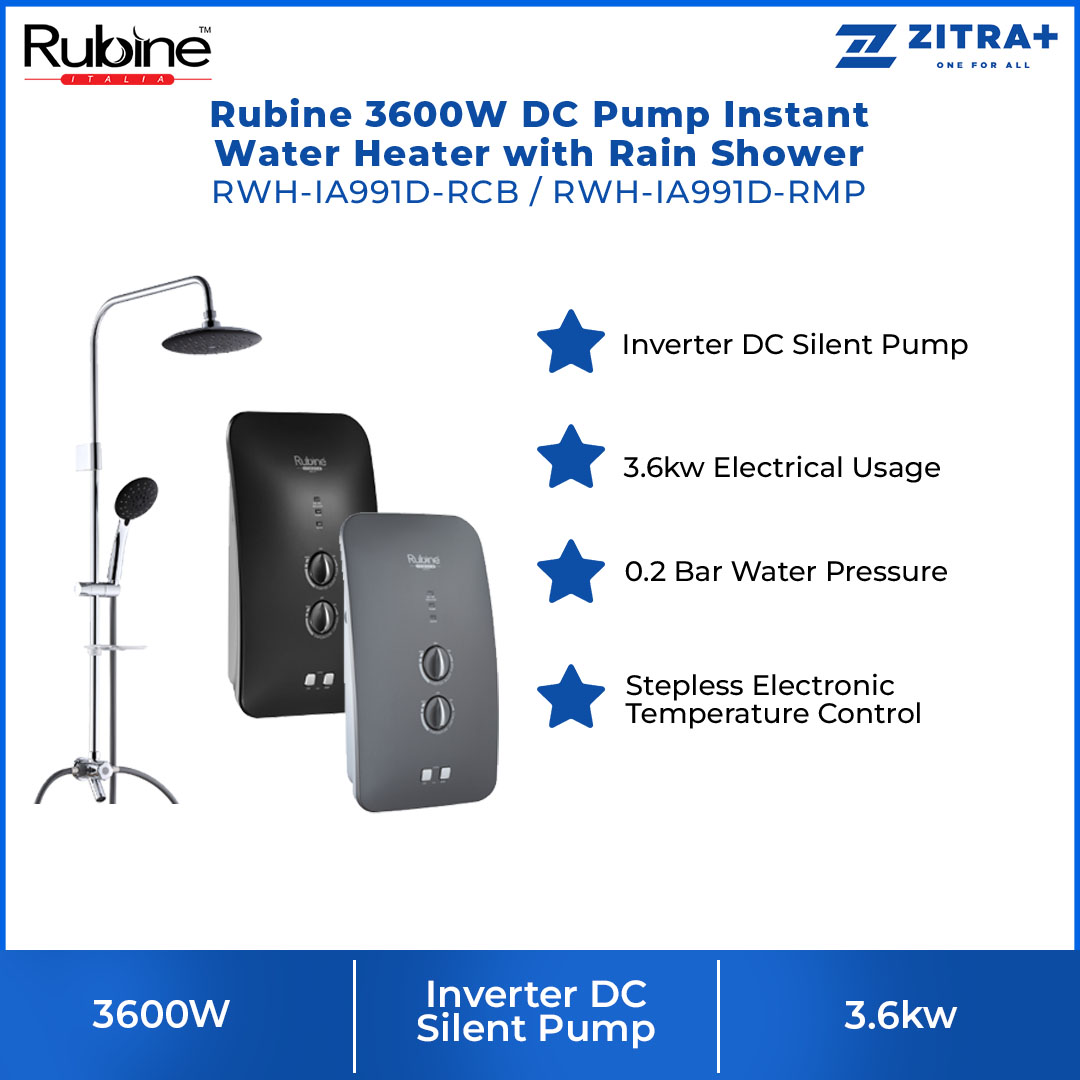 Rinnai 3800W DC Pump Sen Electric Water Heater REI-E380DP-B-WH/ REI-E380DP-BS-BK/ REI-E380DP-C-BG | 5 Multi-Spray, Anti-Twist Hose |1-Knob Control