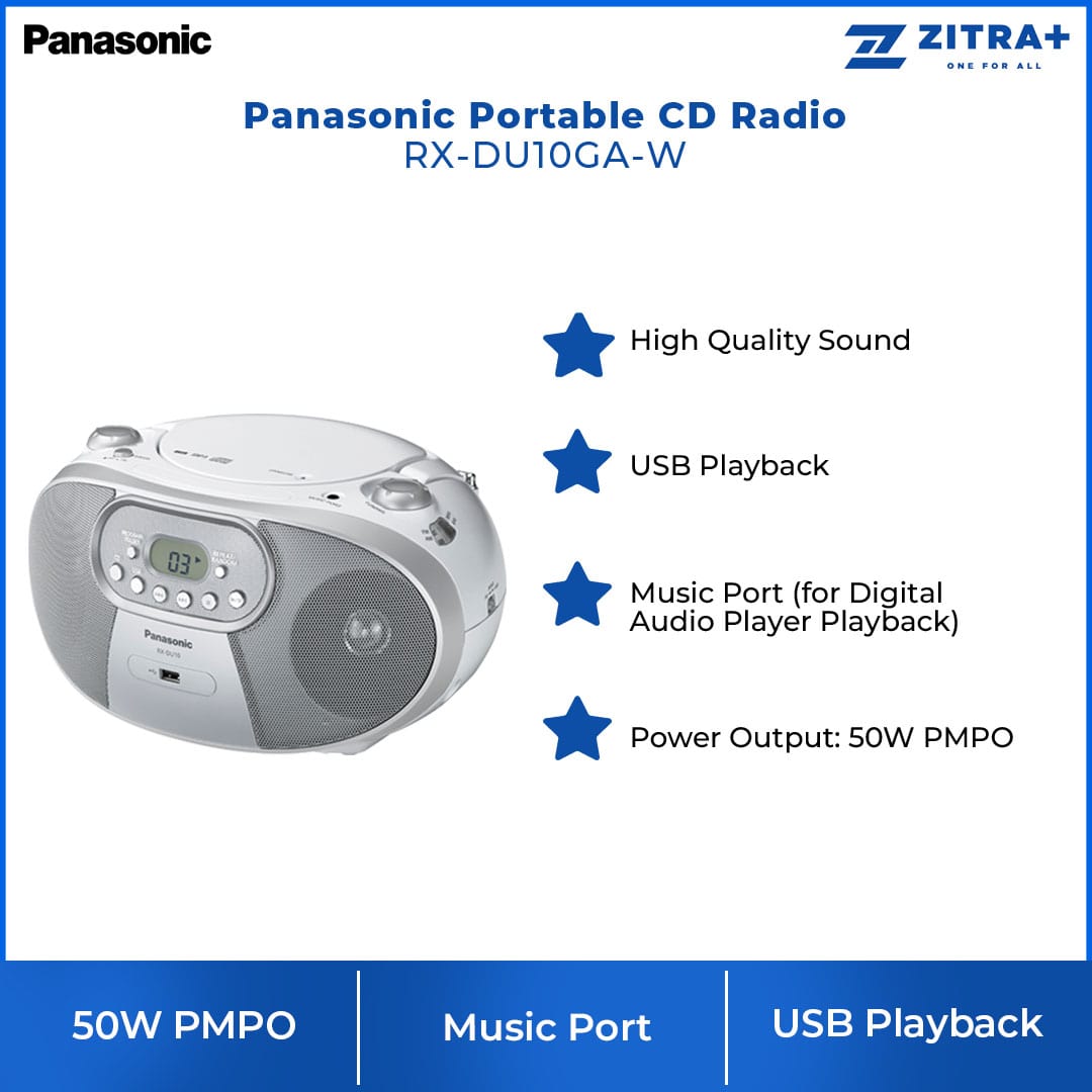 Panasonic Portable CD Radio RX-DU10GA-W | High Quality Sound | MP3 | USB | CD | CD-R/RW | Radio with 1 Year Warranty