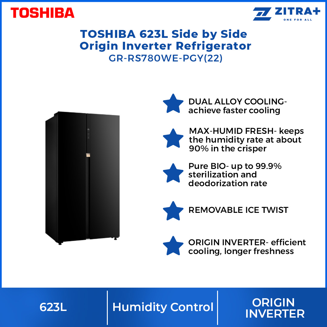 HISENSE 520L Four Doors Inverter Refrigerator RQ568N4AWU | Double Cooling | Metal-Tech Cooling | Metal Glide Drawer | Led Lighting | Refrigerator with 3 Years Warranty