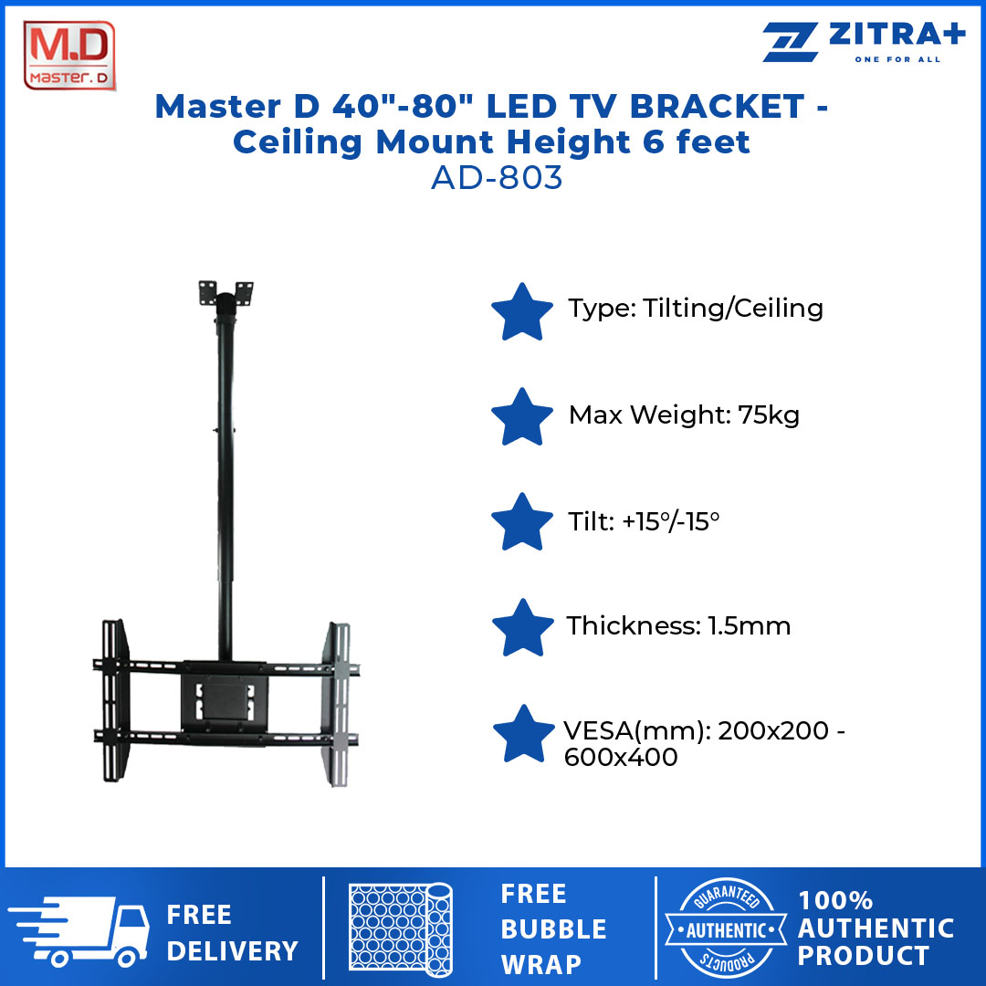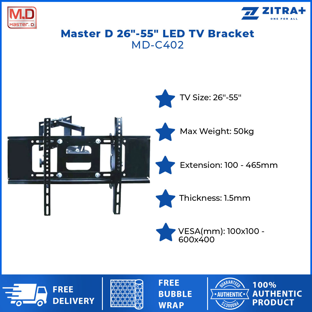 Master D 40"-75" LED TV BRACKET - Full Motion Cantilever Mount (DOUBLE CANTILEVER ARM) 767-L600 | Max Weight: 75kg | Extension: 57 - 500 mm | Tilt: +8°/-5° | Swivel: 160°