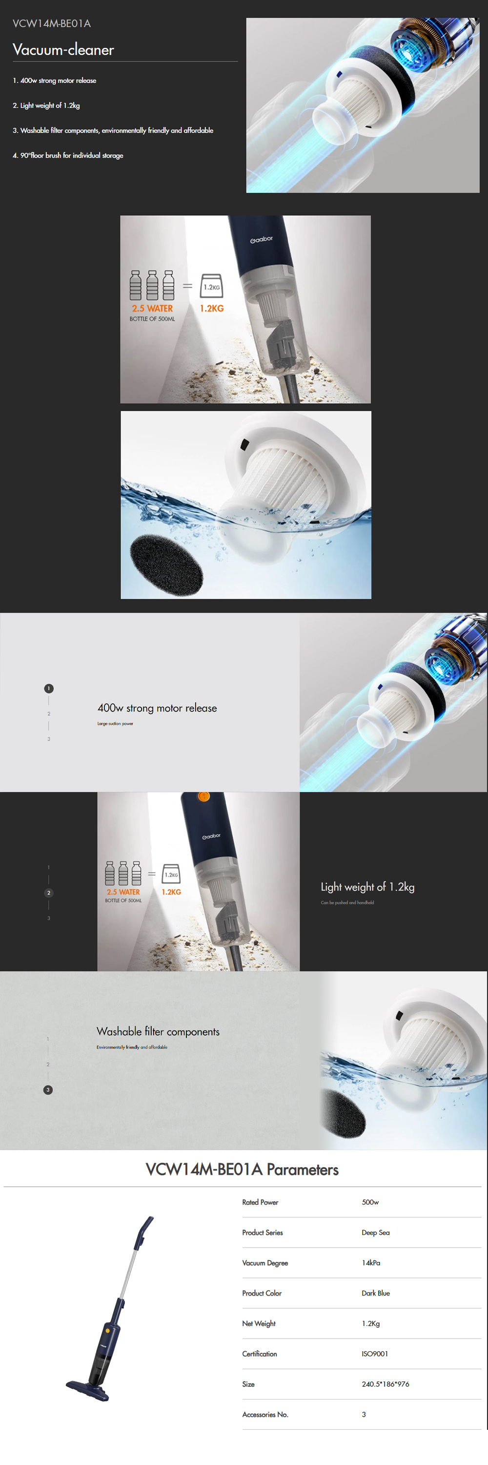 Gaabor 500W Stick Vacuum cleaner VCW14M-BE01A | 400w Strong Motor Release | Washable Filter Components | 90°Floor Brush For Individual Storage | 1 Year General Warranty