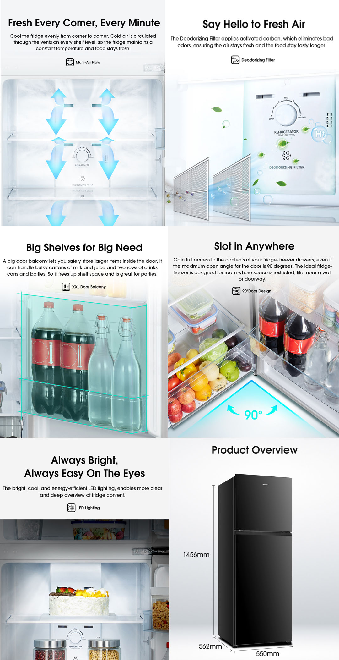 HISENSE 240L 2 Doors Top Mount Smart Inverter Refrigerator RT286N4ABN | Big Shelves - XXL Door Balcony | LED Lighting | Save Energy | Deodorizing Filter | Refrigerator with 2 Years Warranty