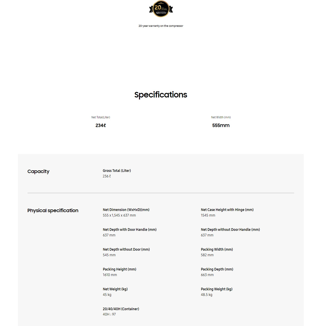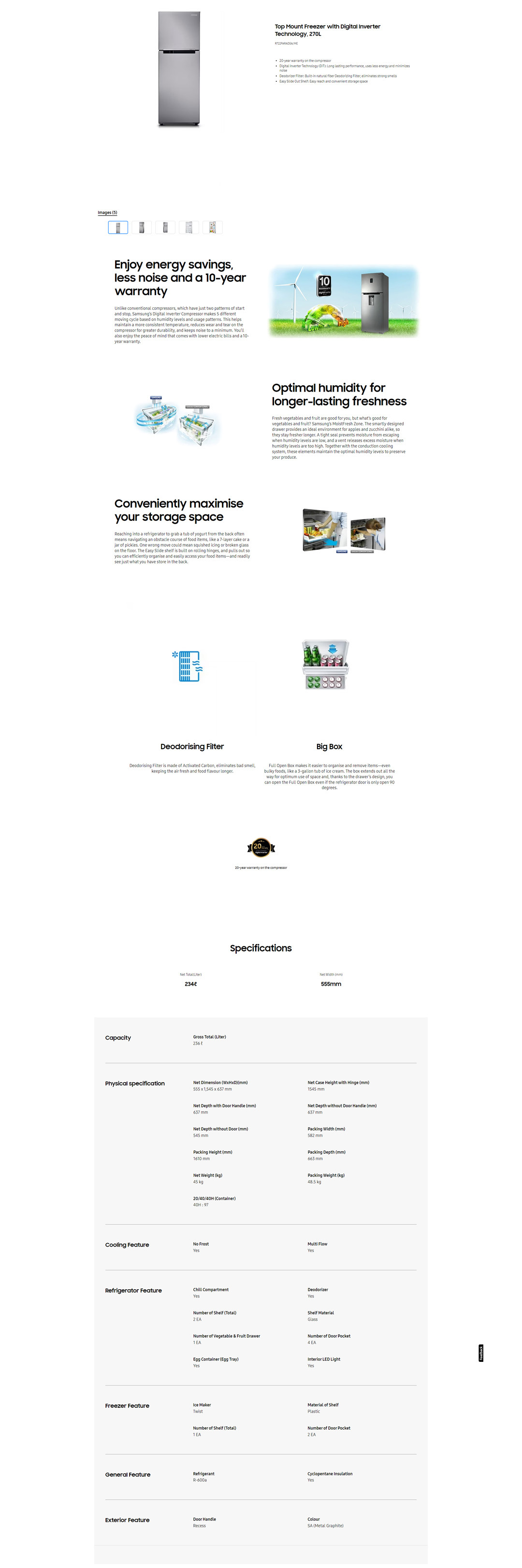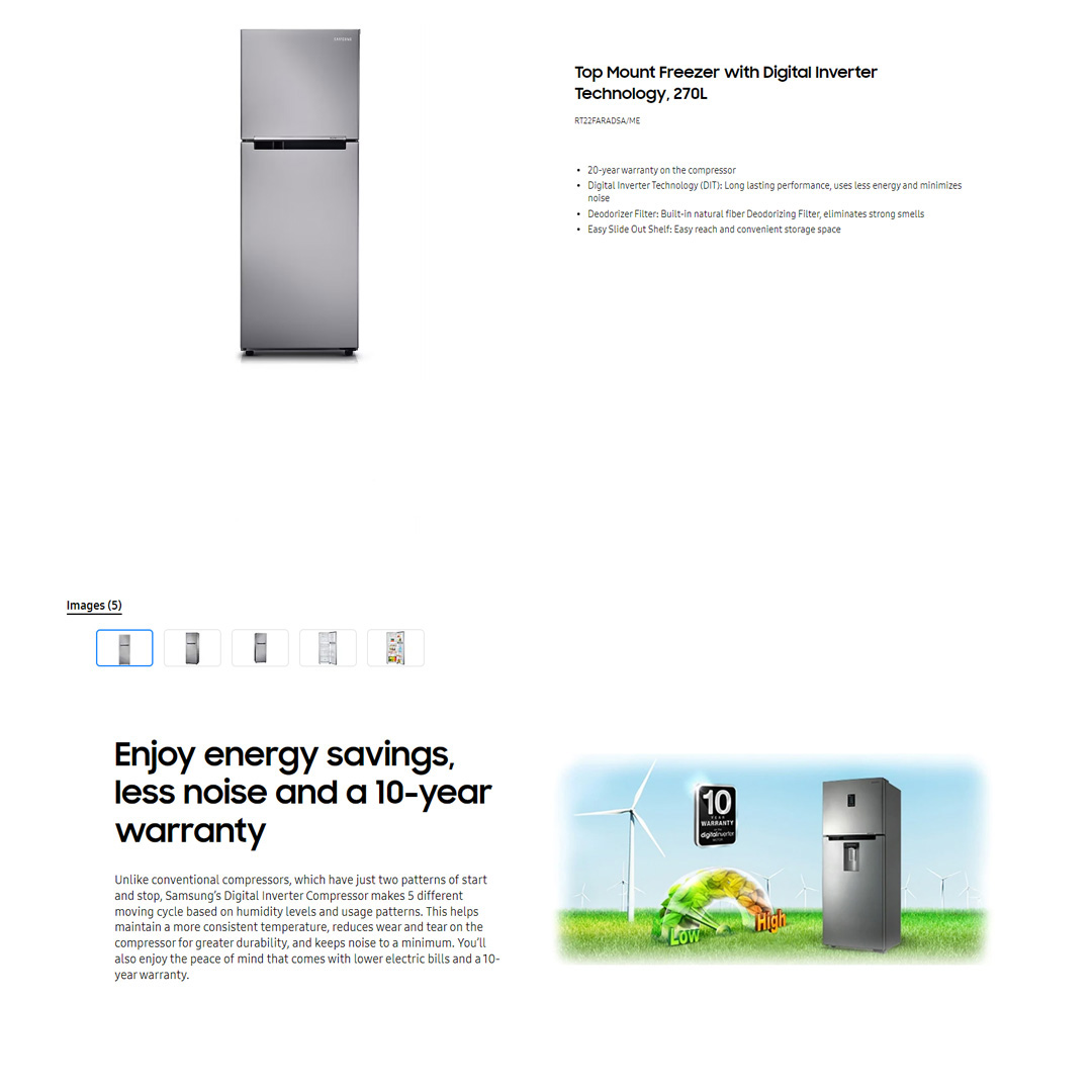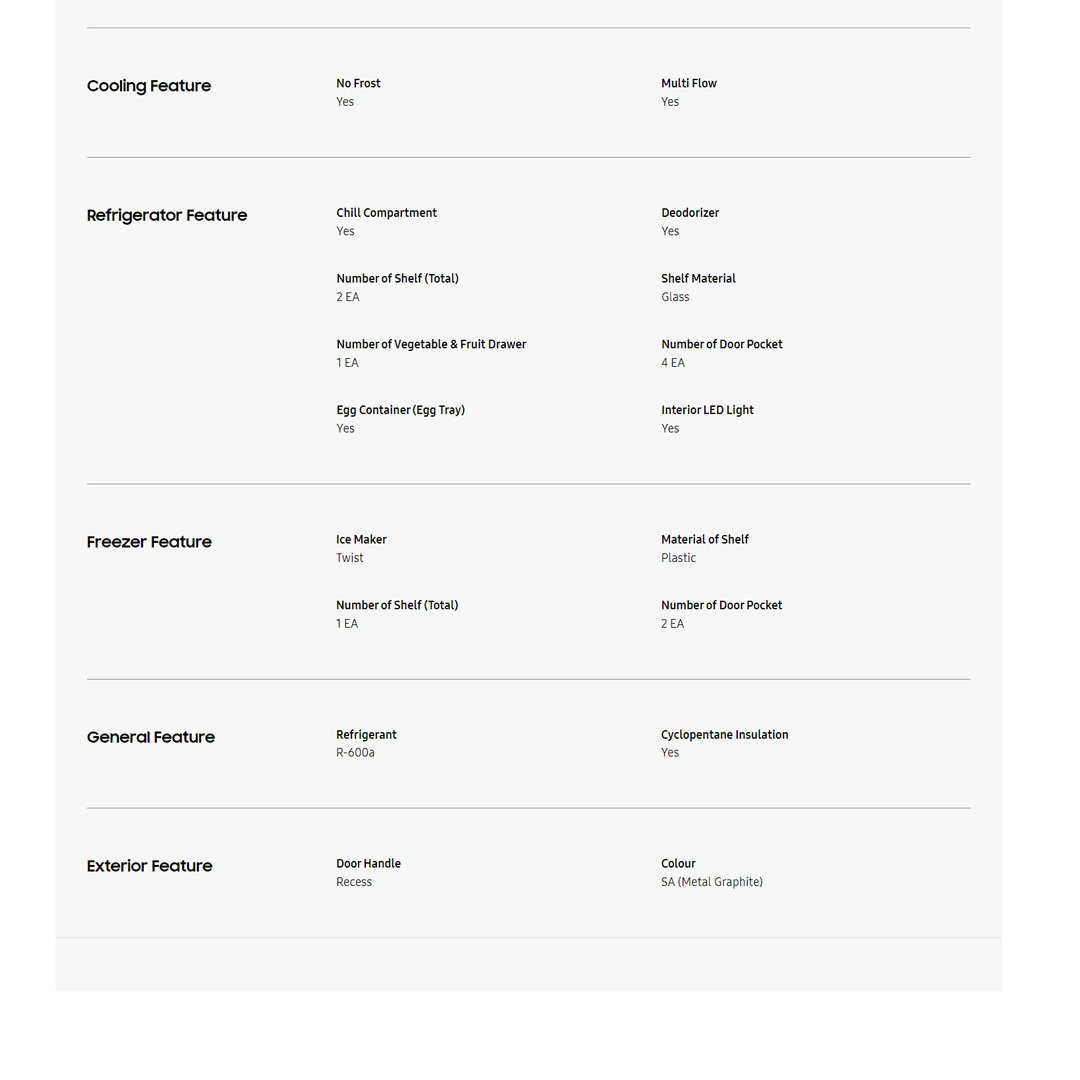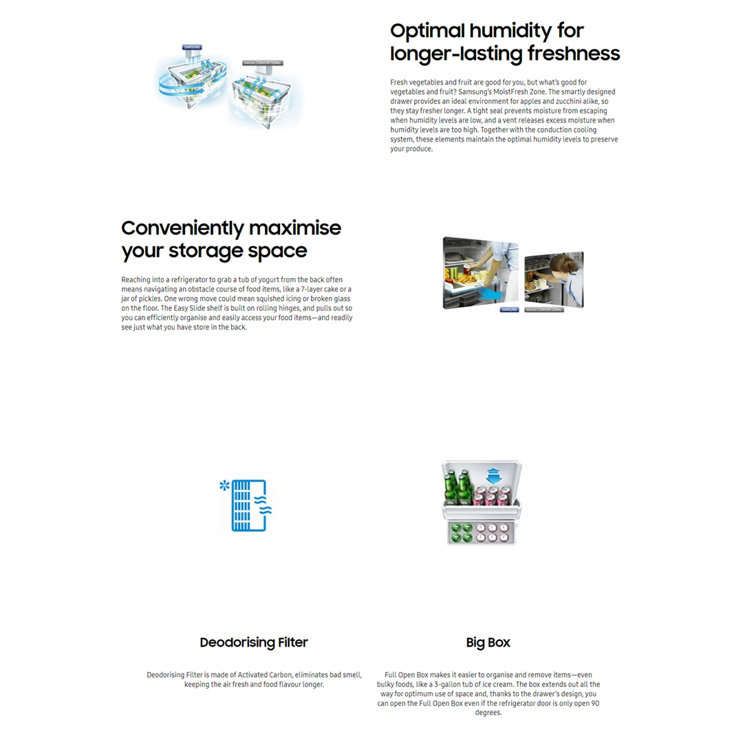 SAMSUNG 270L 2 Doors Top Mount Inverter Refrigerator RT22FARADSA/ME | Optimal Humidity | Dedorizing Filter | Refrigerator with 1 Year General & 10 Year Compressor Warranty