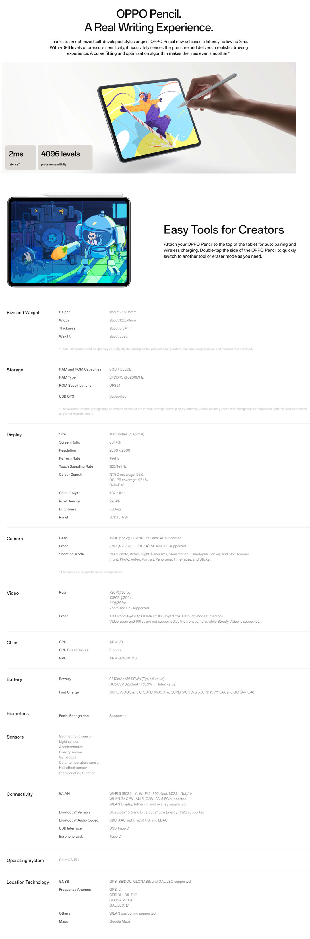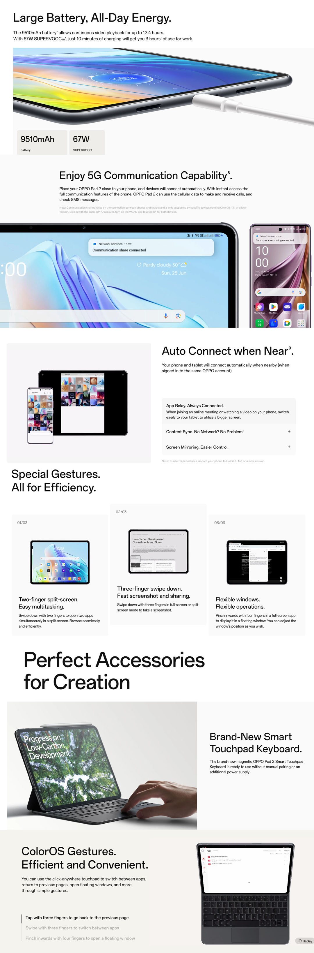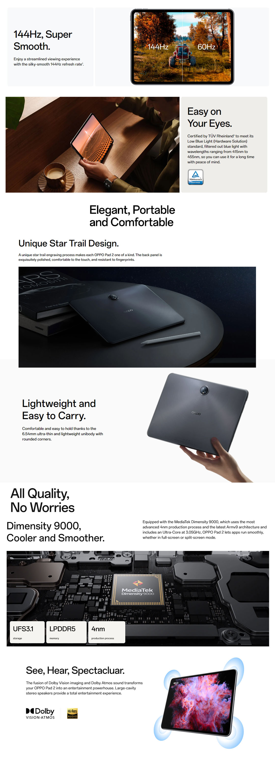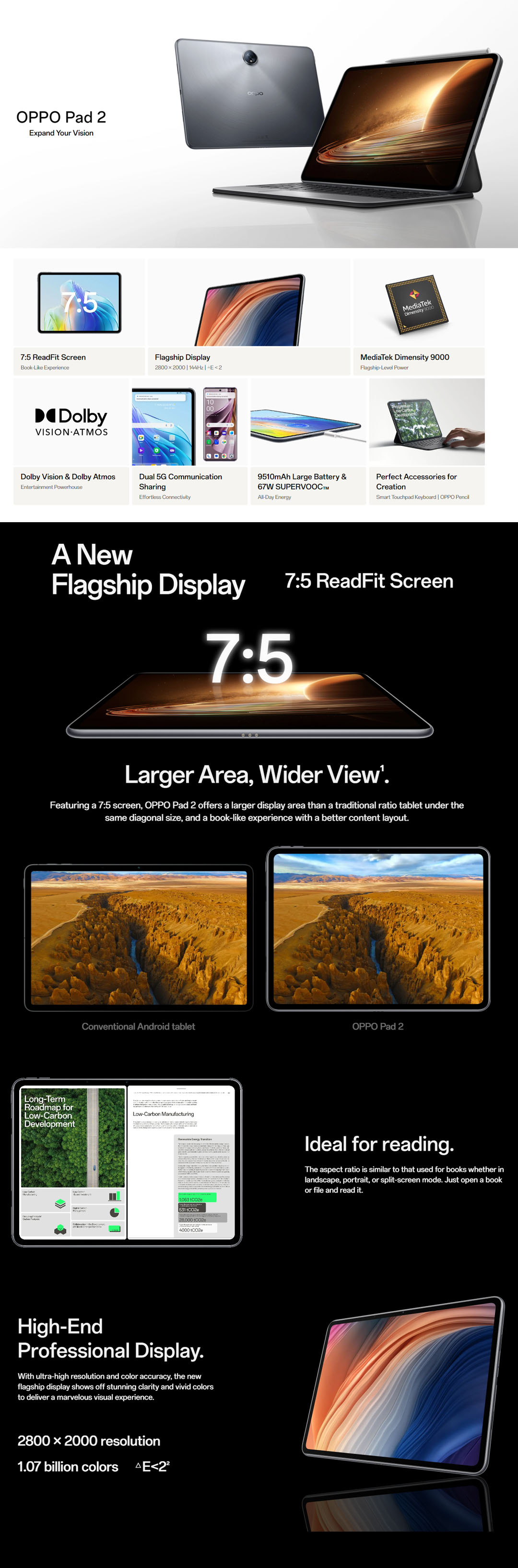 OPPO Pad 2 8GB+256GB | 11.61" Display | 7:5ReadFit Screen | 13MP Camera | 9510mAh Battery | Tablet with 1 Year Warranty