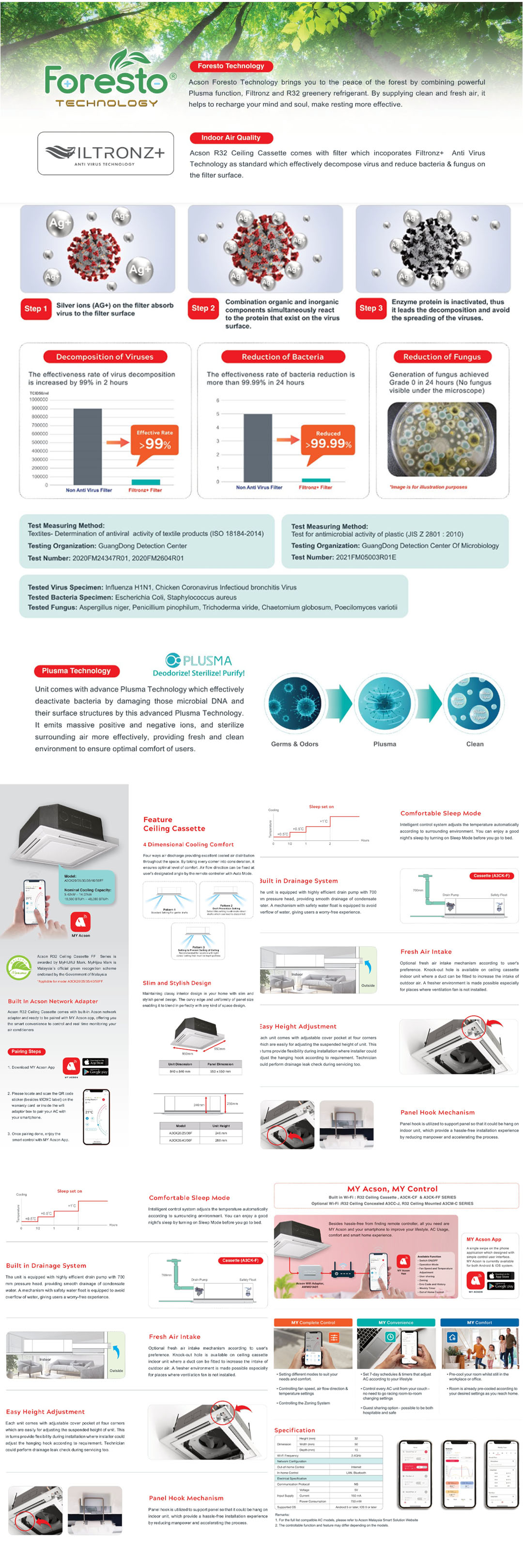 • Ceiling Cassette comes with filter which incoporates Filtronz+ Anti Virus Technology