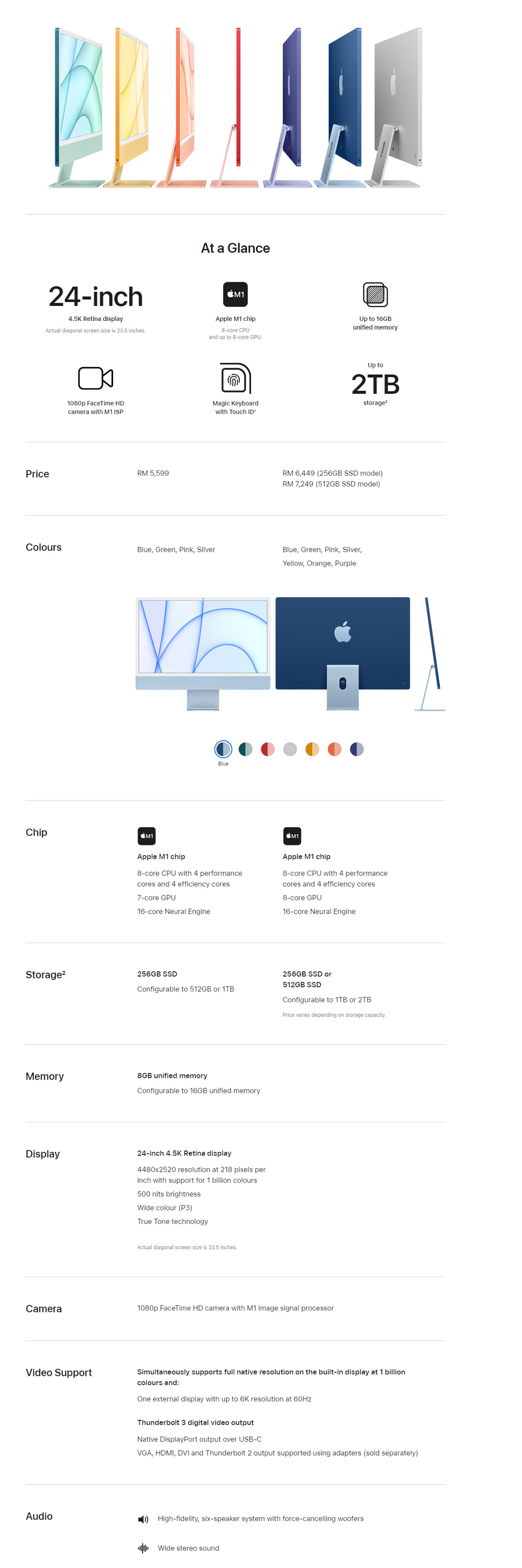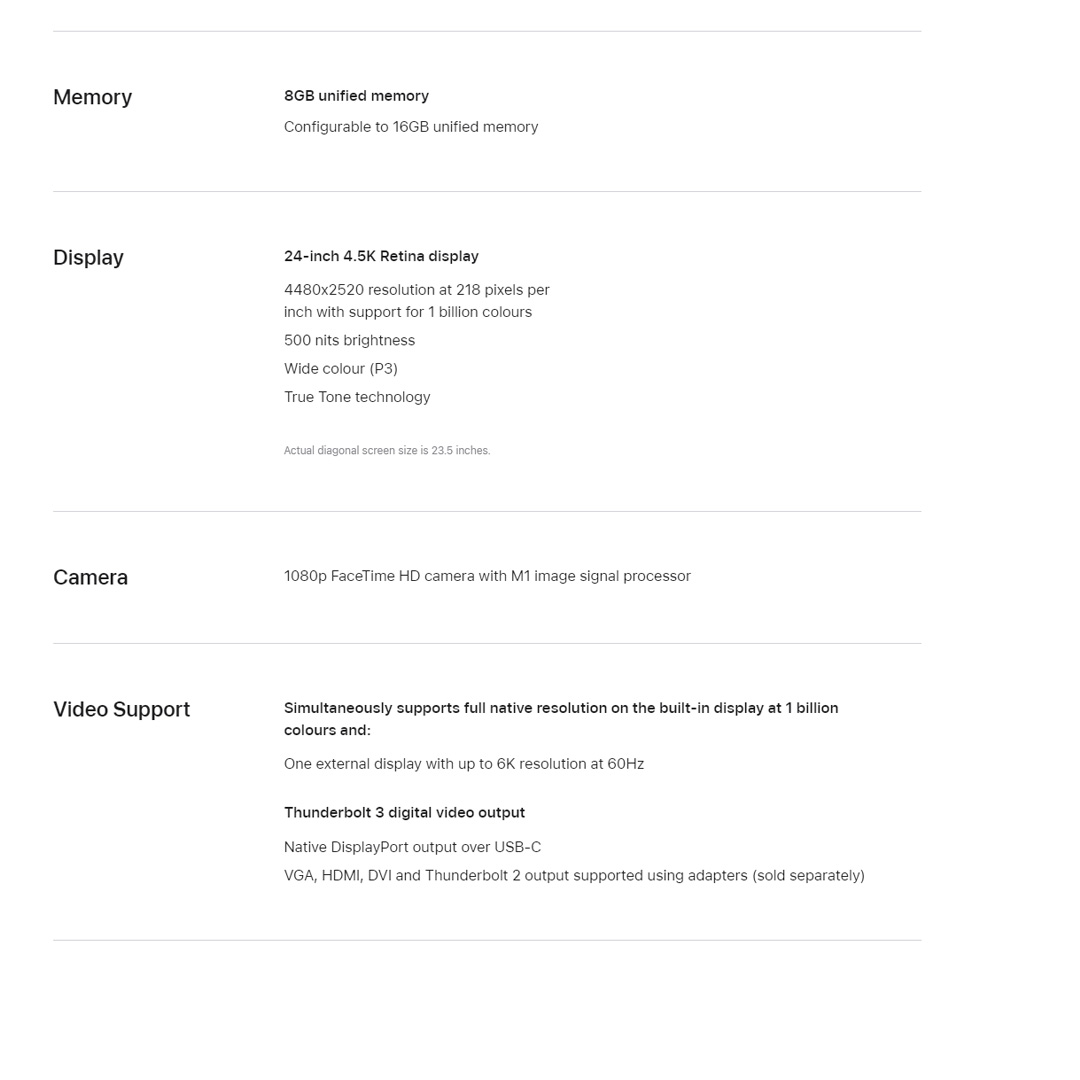 Apple iMac | 24-inch 8GB+256GB | Wi-Fi 6 | HDMI | Thunderbolt 3 | Dolby Atmos | 1080p FaceTime HD | Wide Stereo Sound | Bluetooth 5.0 | iMac with 1 Year Warranty
