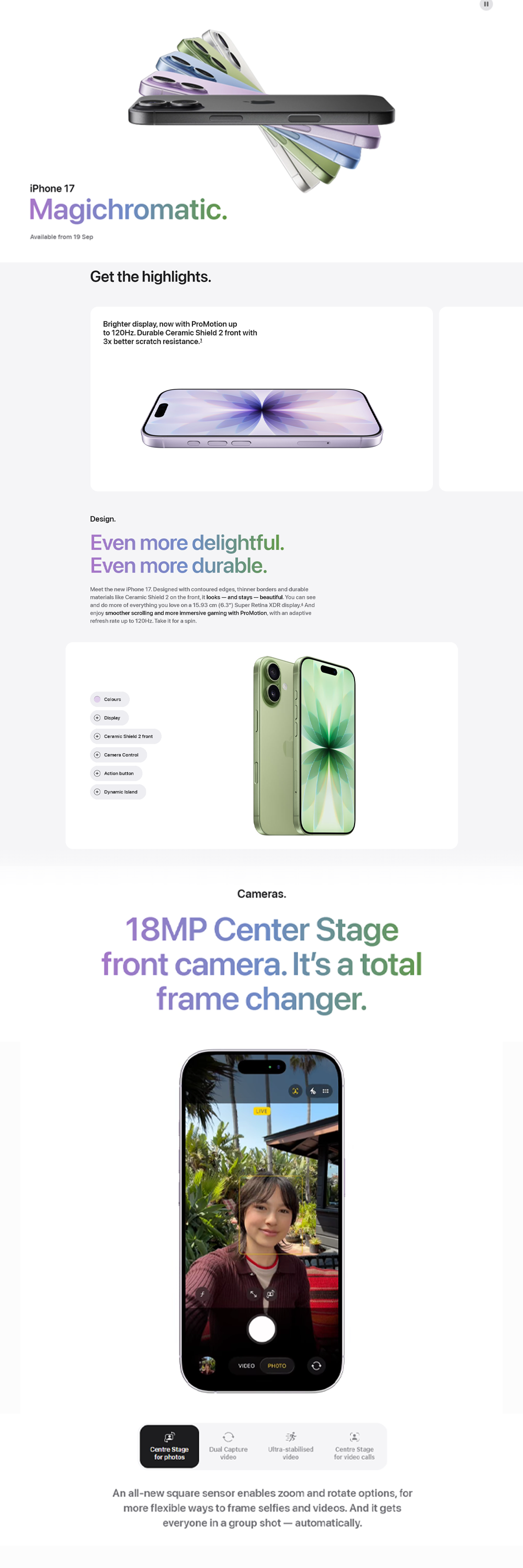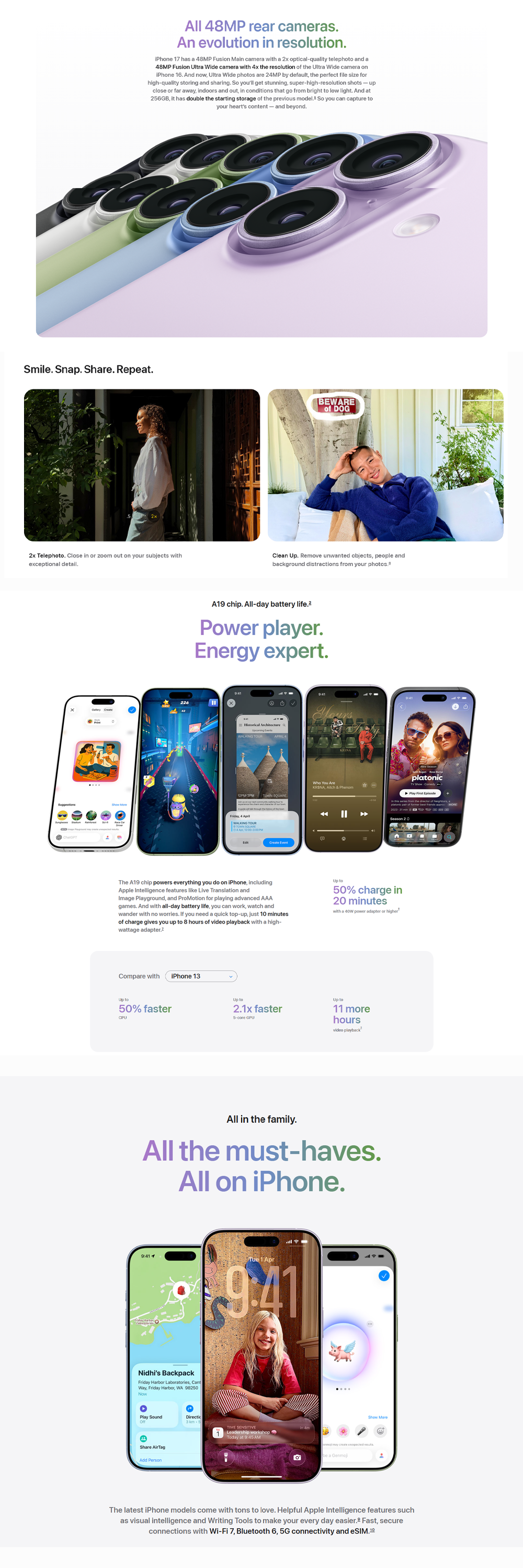 Apple iPhone 17 | A19 chip | 48MP Dual Fusion camera system | Super Retina XDR display | Ceramic Shield 2 front