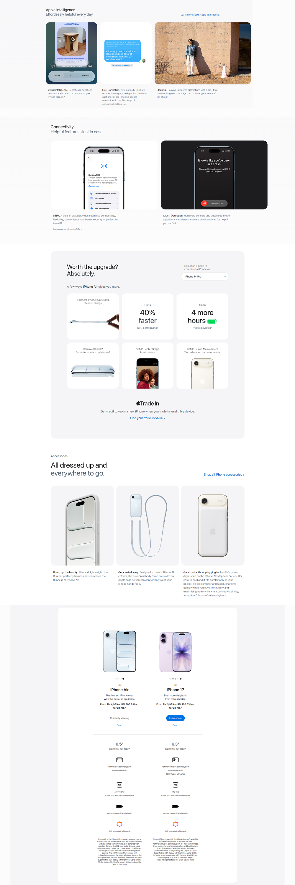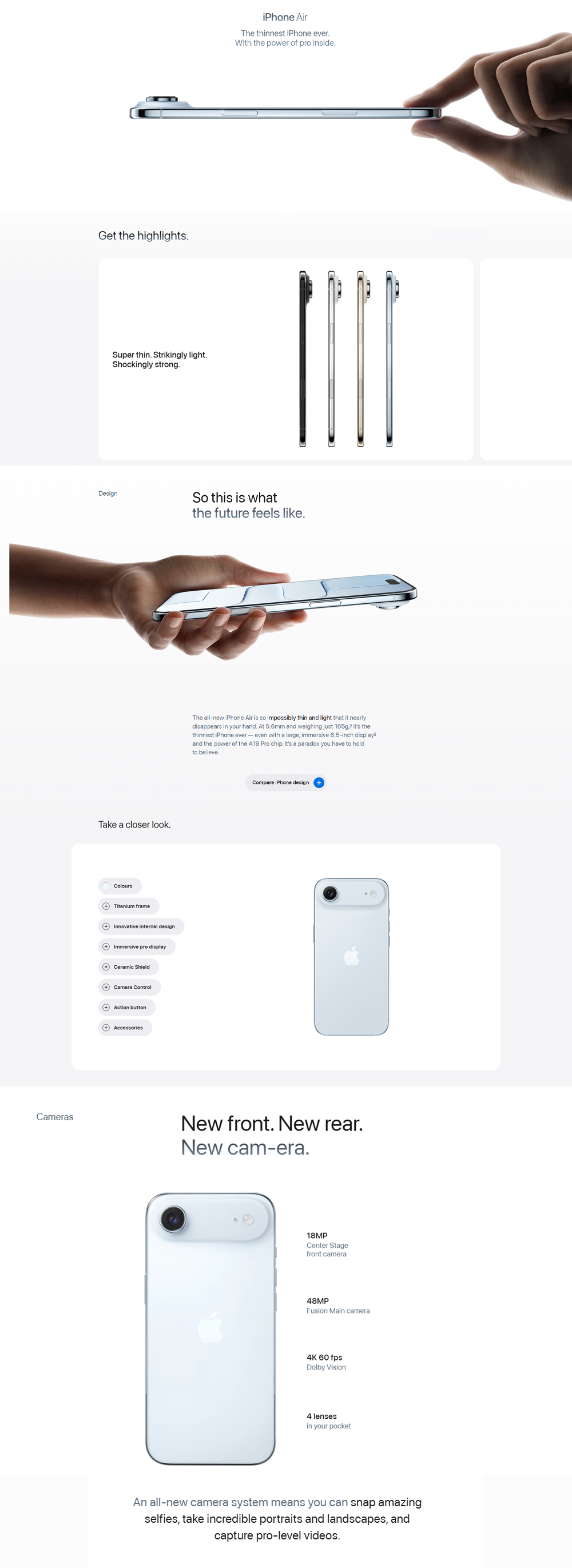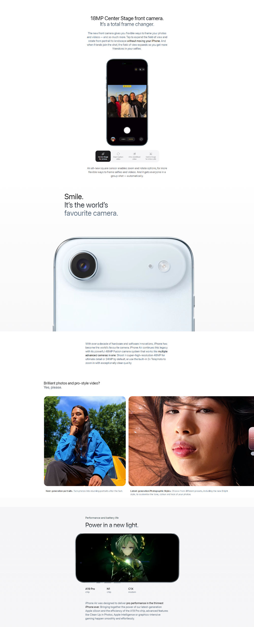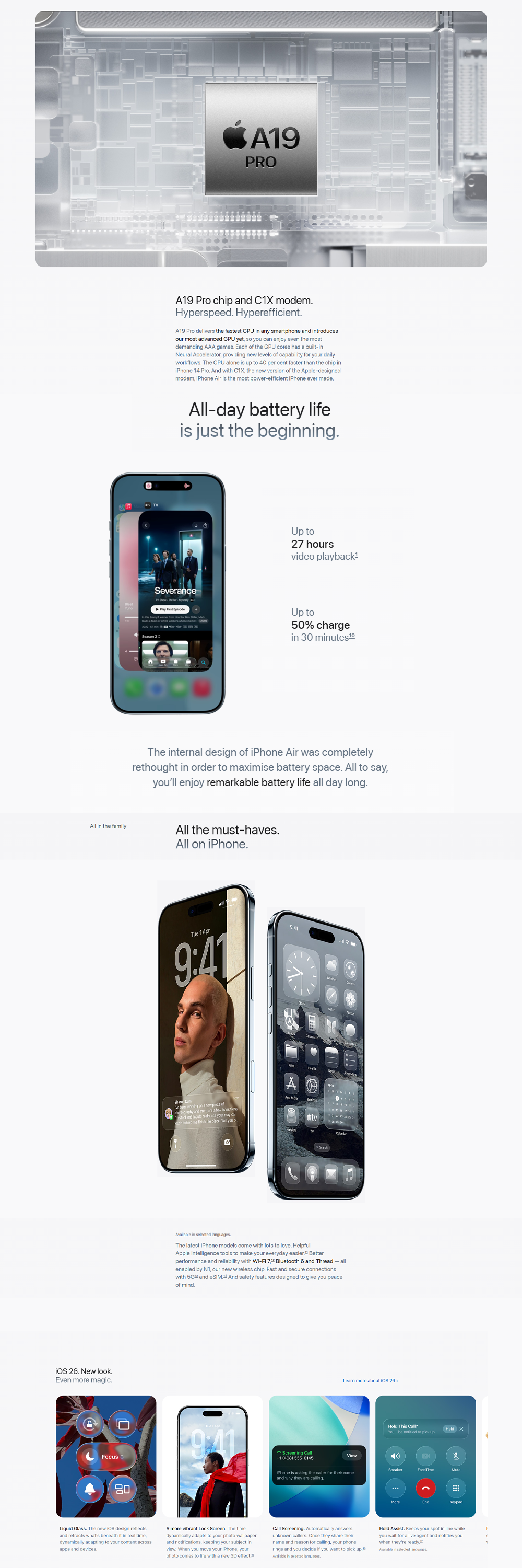 Apple iPhone Air | The Thinnest iPhone Ever | 6.5-inch Display | Durable Ceramic Shield Front and Back | 48MP Fusion Camera System and Center Stage Front Camera