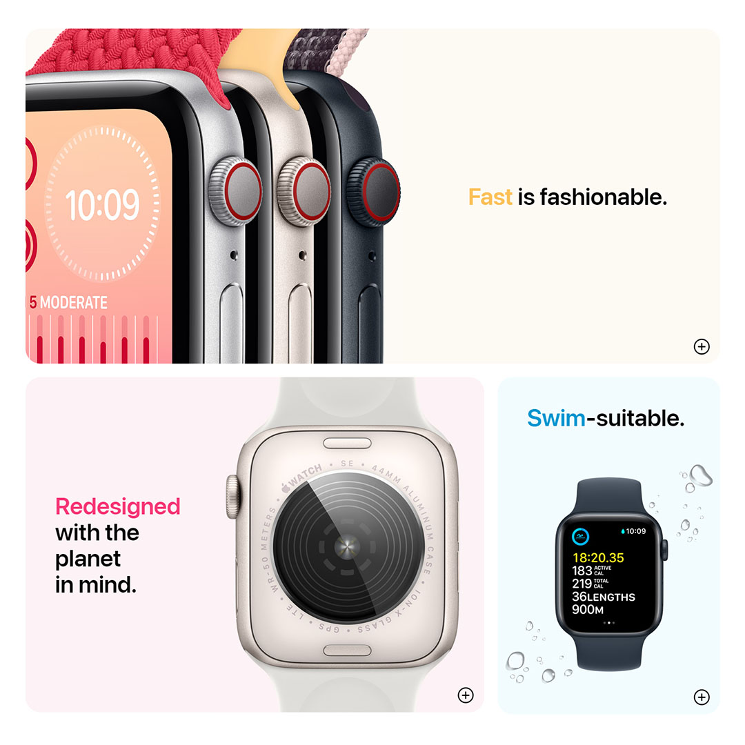 APPLE Watch SE Aluminum Case With Sport Band | GPS+CELLULAR | Retina Display | Heart Rate Notifications | Emergency SOS | Smart Watch With 1 Year Warranty