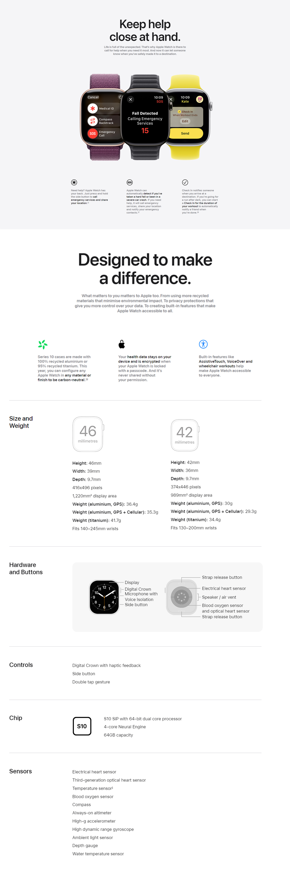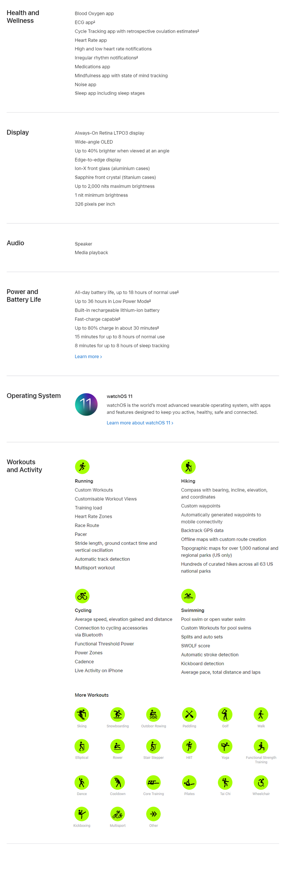 ▪ S10 SiP - Double tap gesture / with 64‑bit dual core processor, watchOS 11