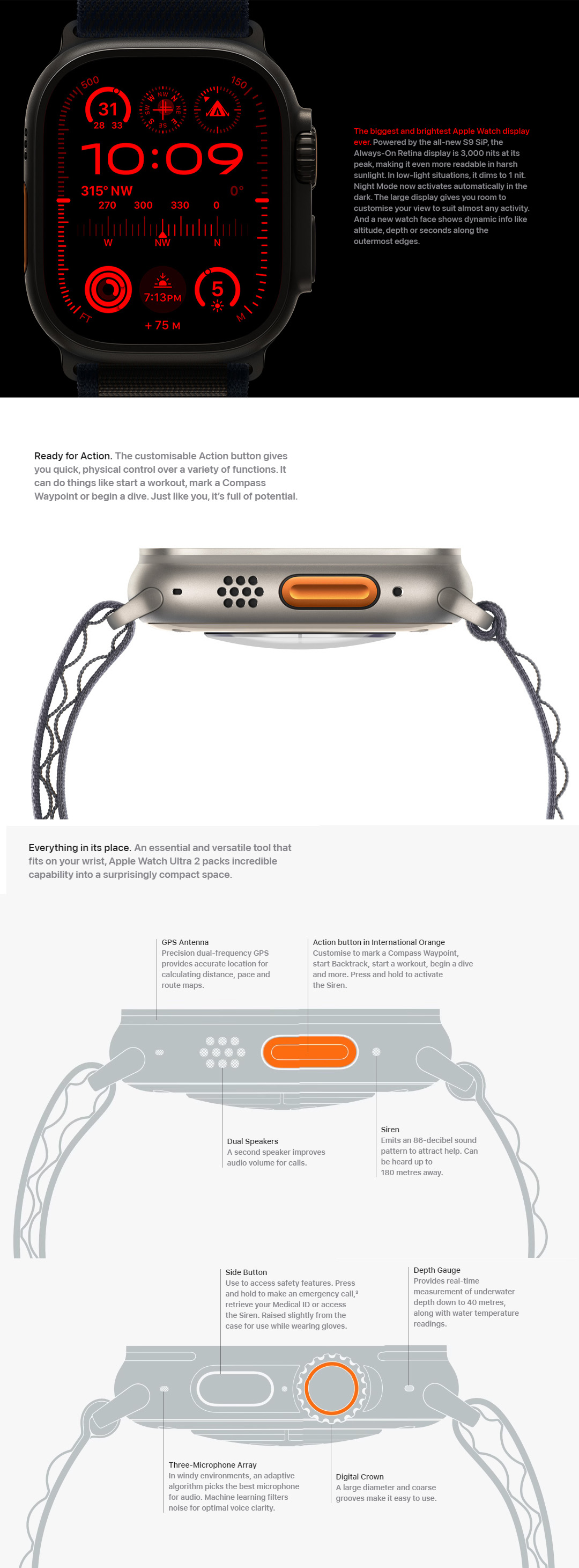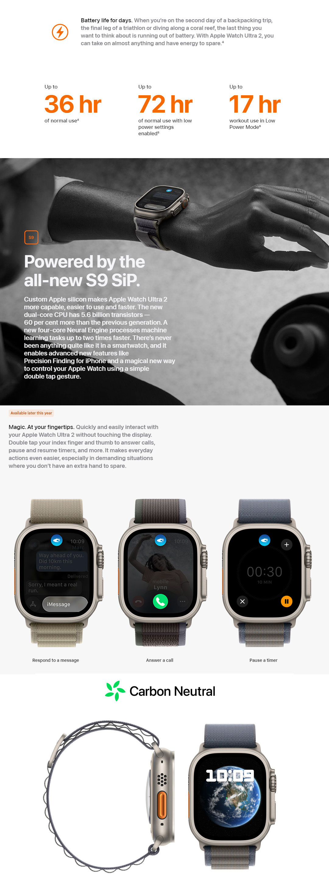● Retina LTPO OLED ● Sapphire Crystal Glass ● watchOS 10
