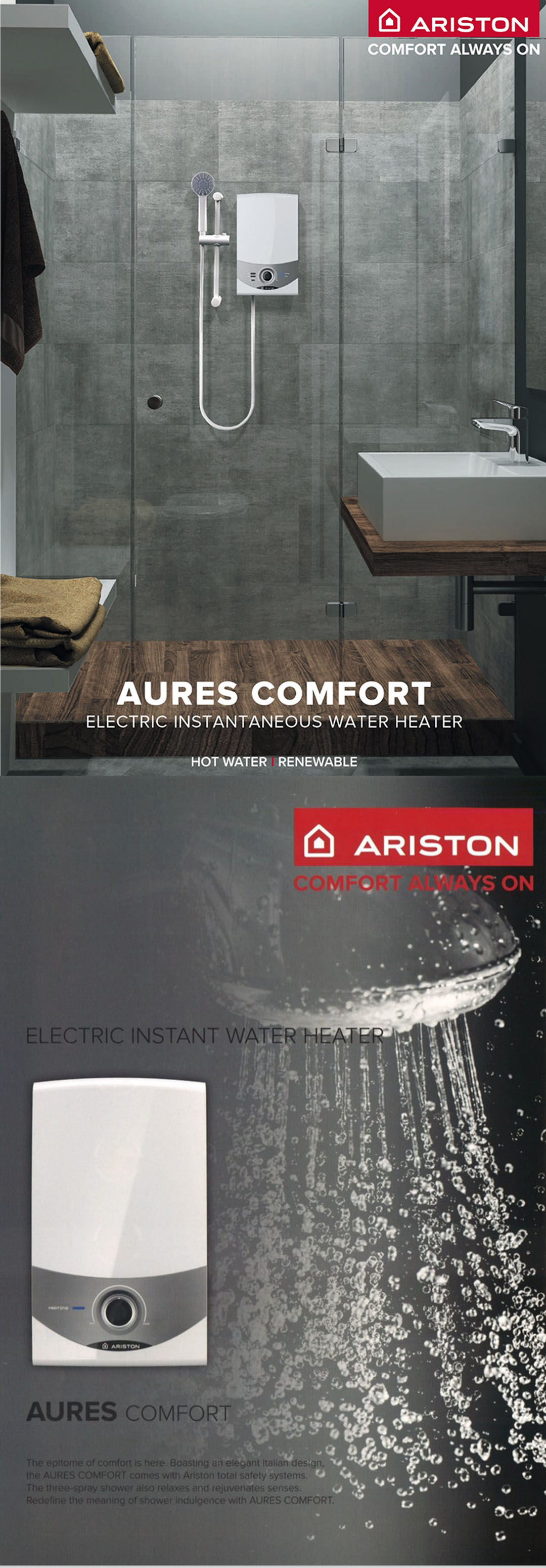 ARISTON 3600W Non Pump Electric Instant Water Heater SM36ESBS | 3 Sprays Shower | Protection From Water Splash | Double Pole ELCB | Water Heater with 1 Year General Warranty & 5 Years Heating Element Warranty