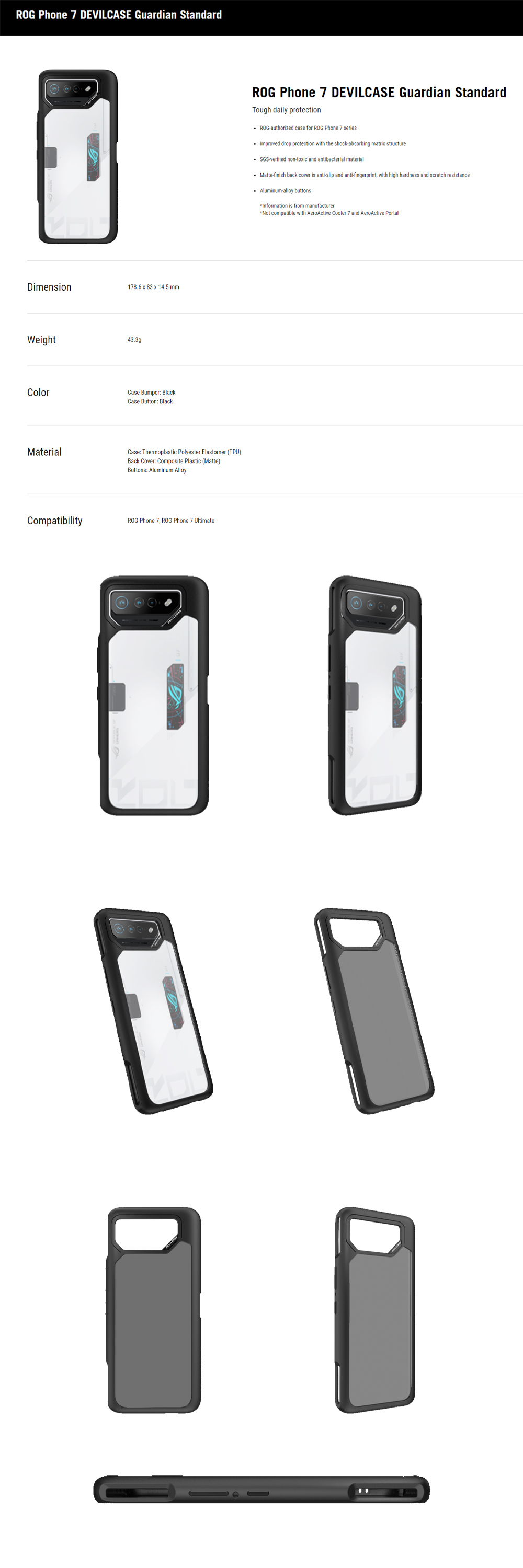 ASUS ROG Phone 7 DEVILCASE Guardian Standard | Aluminum-alloy buttons | Matte-finish back cover | SGS-Verified Non-Toxic And Antibacterial Material