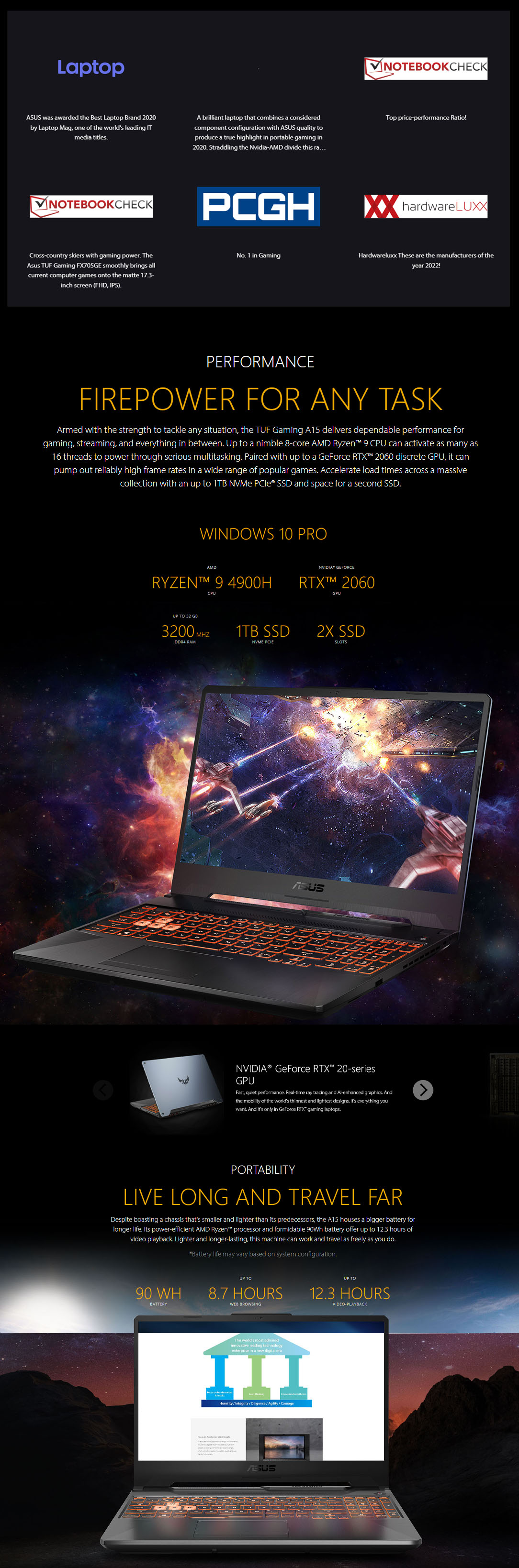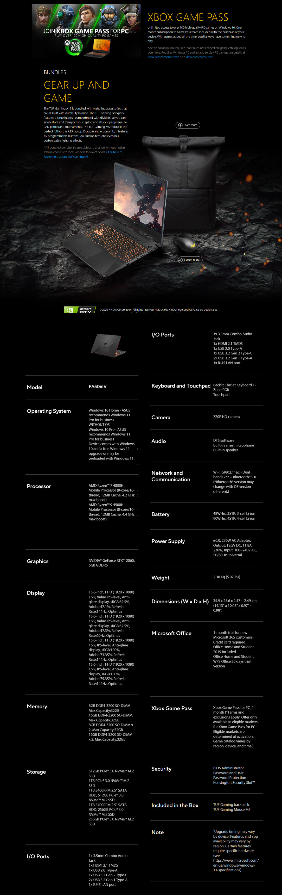 ASUS TUF Gaming A15 Laptop FA506I-EBHN061W | AMD Ryzen 7 4800H | 8GB+512GB SSD | 15.6-inch FHD | Windows 11 | Gaming Laptop with 2 Years Warranty