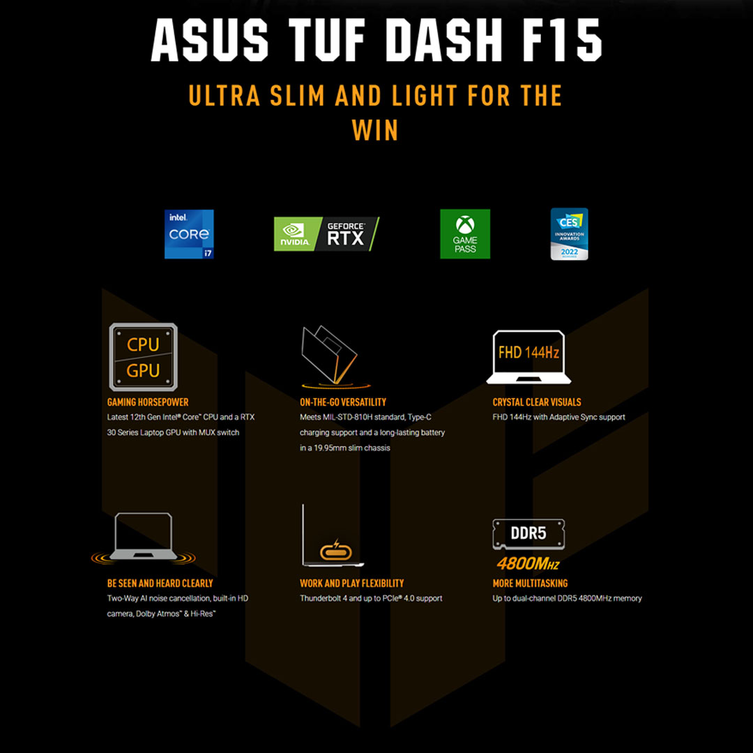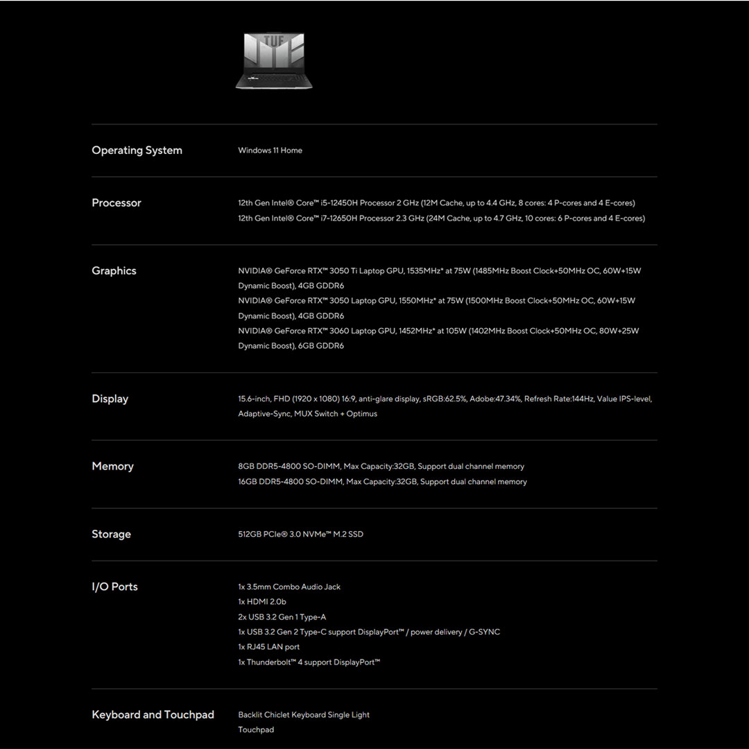 ASUS TUF Gaming F15 Laptop FX506H-MHN206W/FX506H-HHN080W (Intel Core i7-11800H/16GB/512GB SSD/NVIDIA GeForce RTX 3060/15.6-inch FHD/W11) | DTS Software | Kensington Security Slot | Wi-Fi 6 | Bluetooth 5.2 | Gaming Laptop with 2 Year Warranty