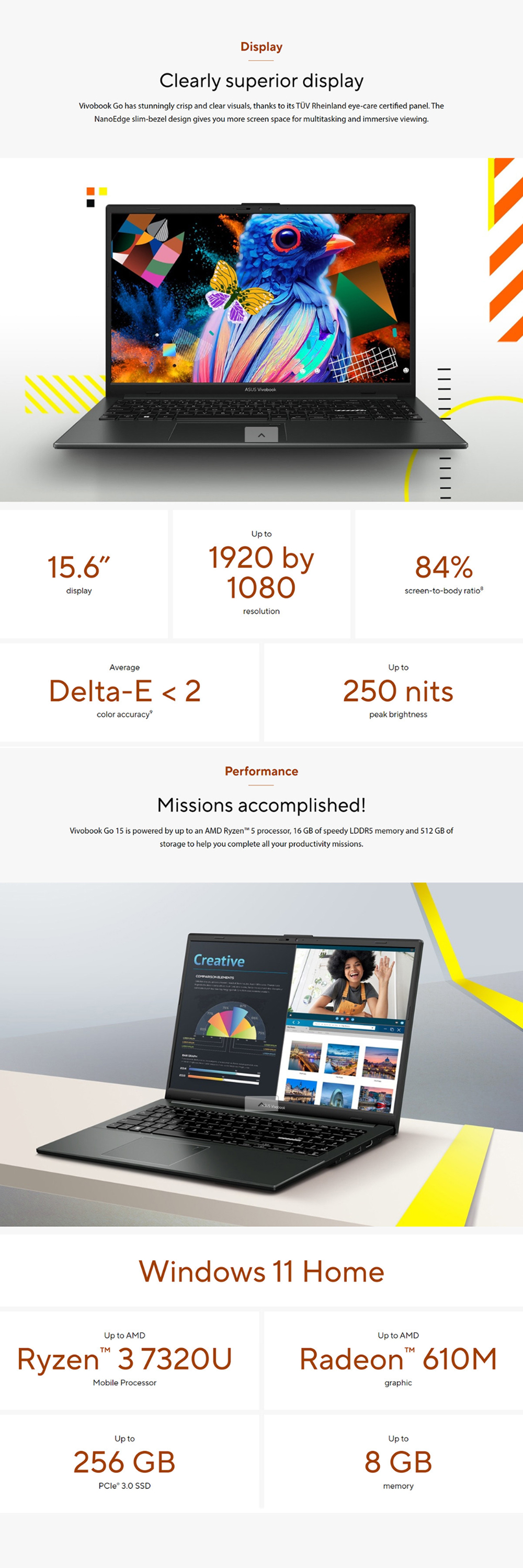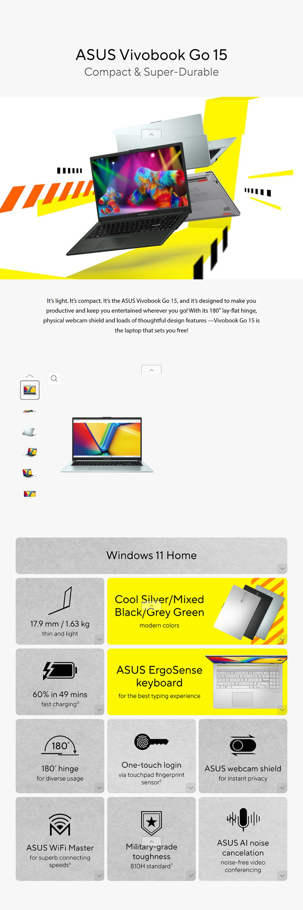 ASUS Vivobook Go 15 Laptop E1504F-ANJ466WS | System Diagnosis | Function Key Lock | WiFi SmartConnect | 2 Year General Warranty