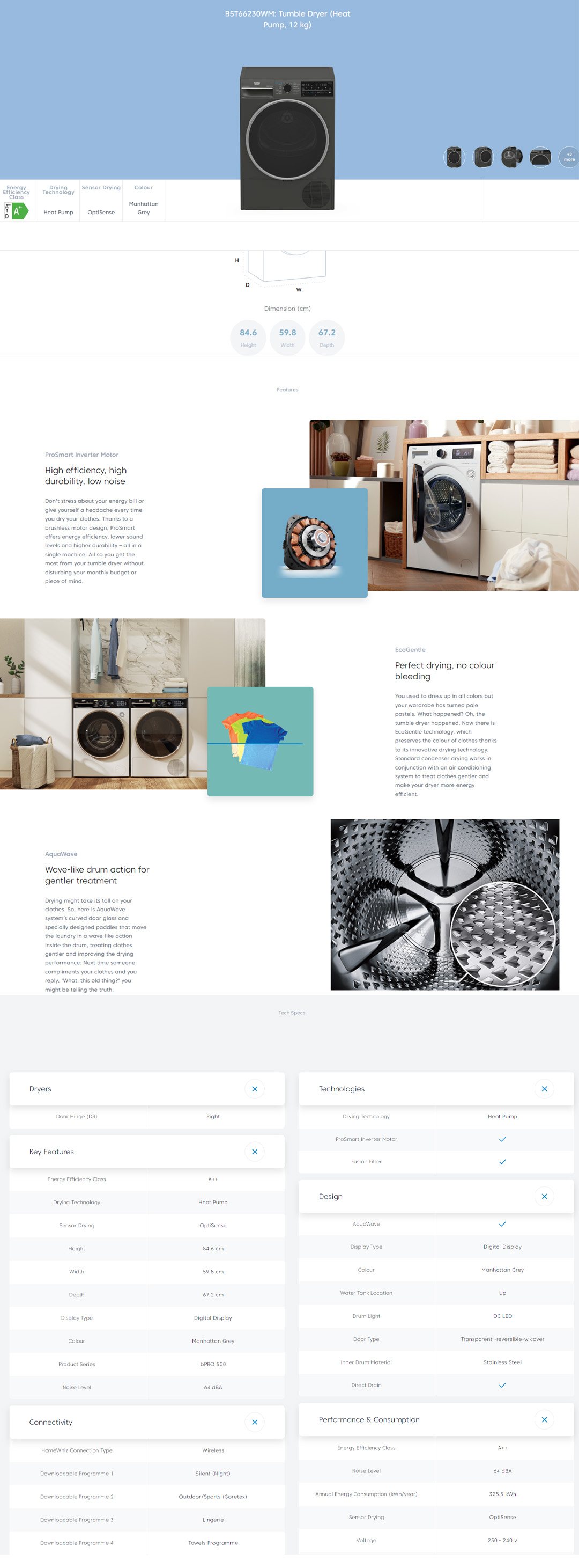 Beko 12KG Heat Pump ProSmart Inverter Tumble Dryer B5T66230WM | AquaWave | EcoGentle | Digital Display | Hygienic Drying | Tumbler Dryer with 2 Year Warranty