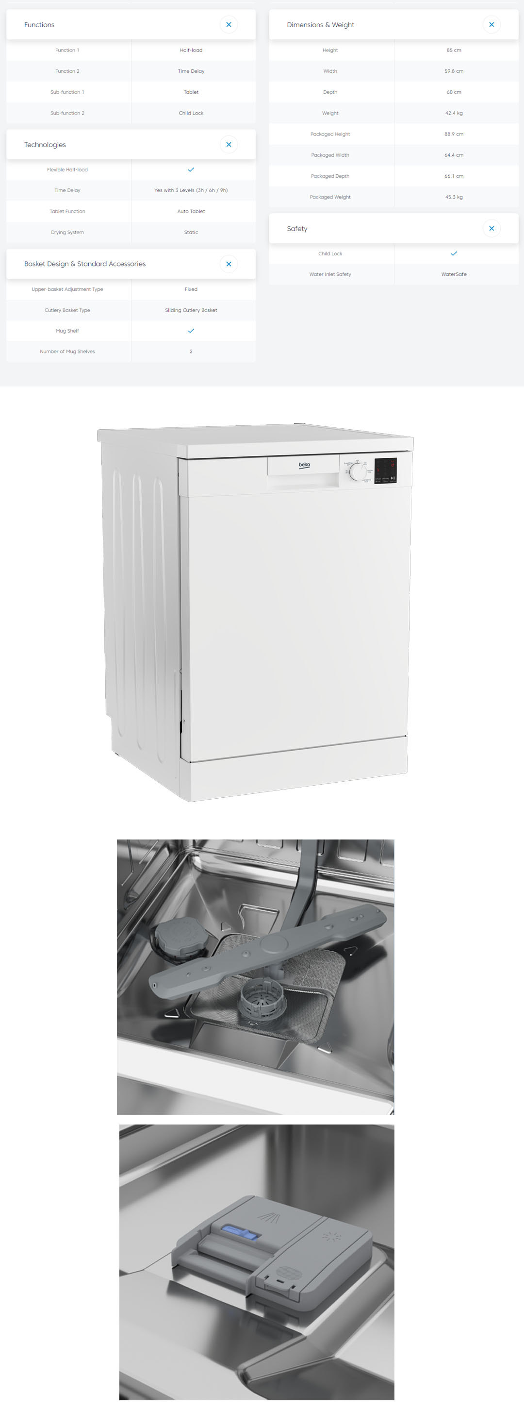 Beko 13 Place Settings Free Standing ProSmart Inverter Dishwasher DVN05R20W | Sliding Cutlery Basket | Sliding Detergent Dispenser | LED Display | Child Lock | Dish Washer with 2 Year Warranty