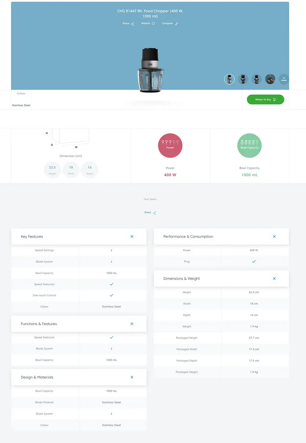 Beko 1L Food Chopper CHG 81442 BX | 2 Speed Setting | 2 Blade System | Speed Selection | One Touch Control | Food Chopper with 2 Year General Warranty