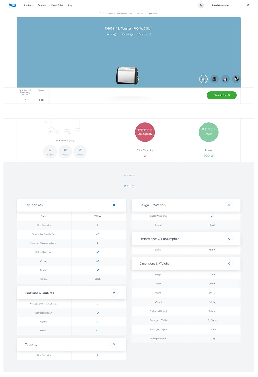 Beko 2 Slices Toaster TAM7211B | Power 900 W | Capacity 2 Toaster | 7 Browning Levels | Defrost Function | Cancel & Reheat & Detachable Crumb Tray | Toaster with 2 Year General Warranty