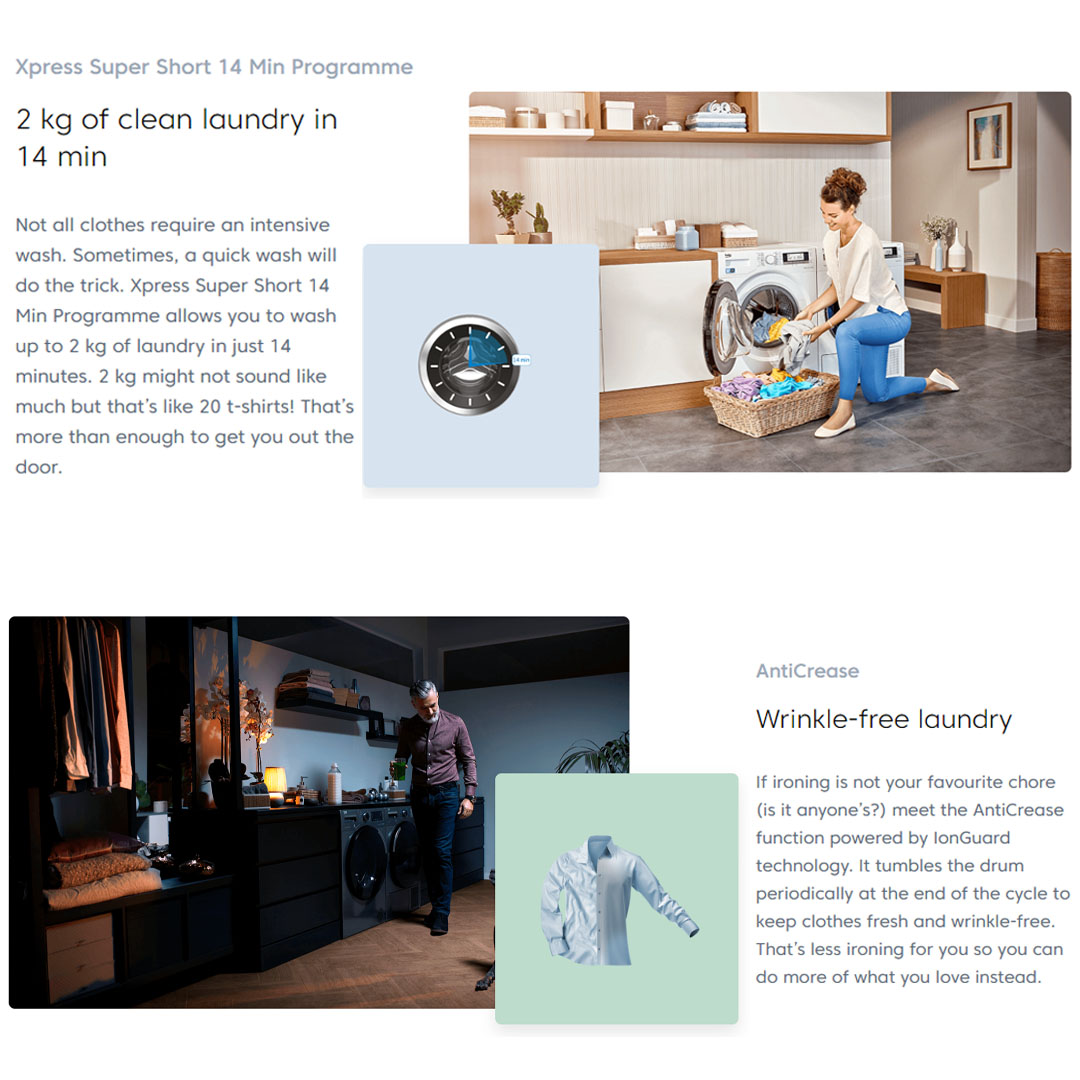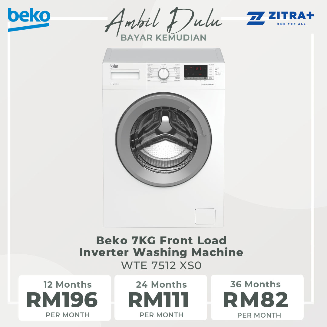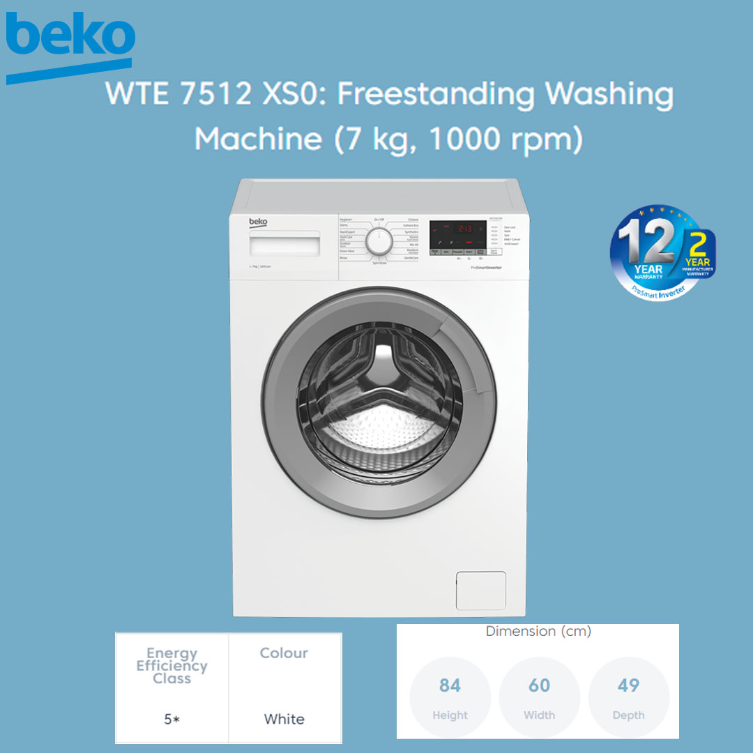 Beko 7KG Front Load Inverter Washing Machine WTE 7512 XS0 | ProSmart Inverter Motor | AntiCrease | StainExpert Programme | Washer with 2 Years General Warranty & Motor with 12 Years Warranty
