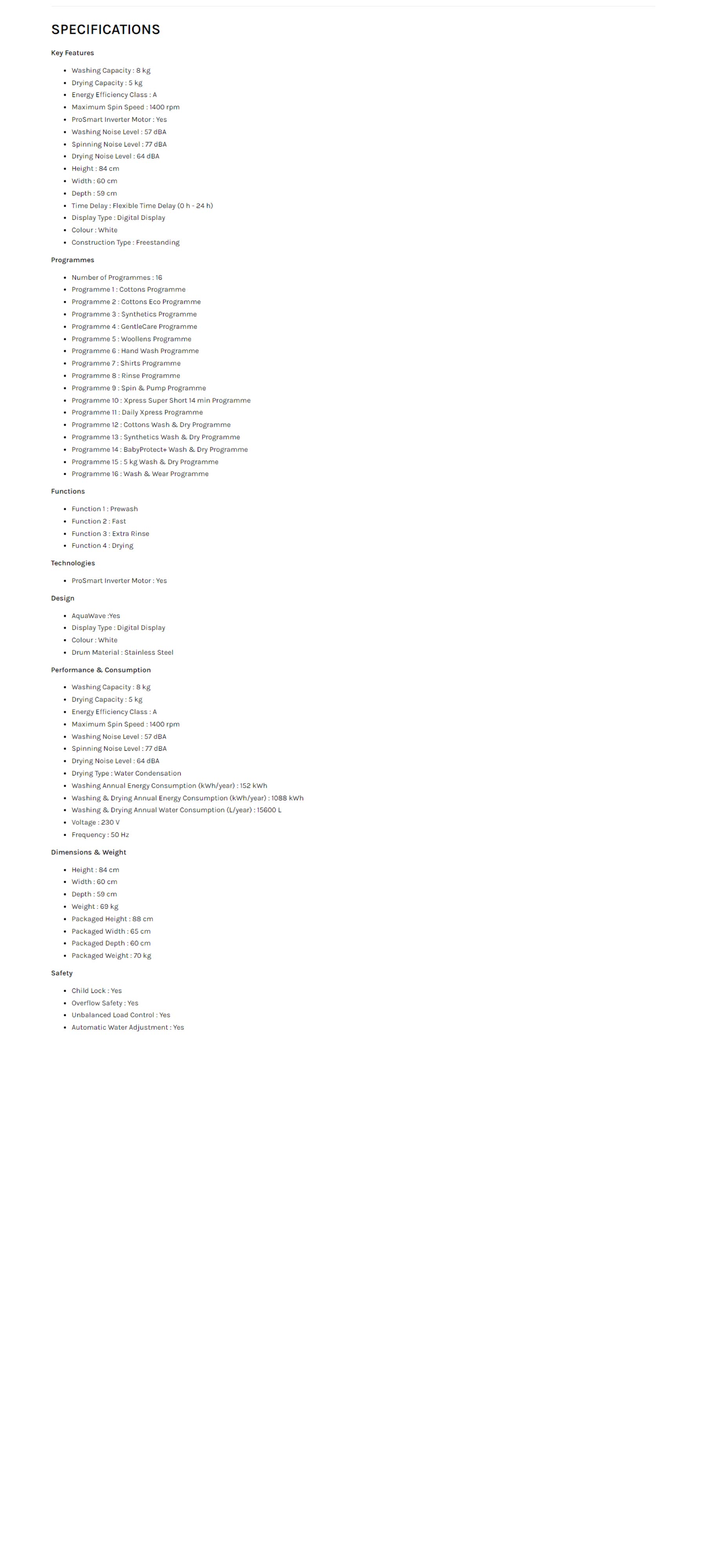 Beko 8KG/5KG Front Load ProSmart Inverter Washer Dryer WDX8543130W | 16 Programmes | AquaWave | Energy Efficiency Class: A | Overflow Safety | Washer Dryer with 2 Years General Warranty & 12 Years Motor Warranty