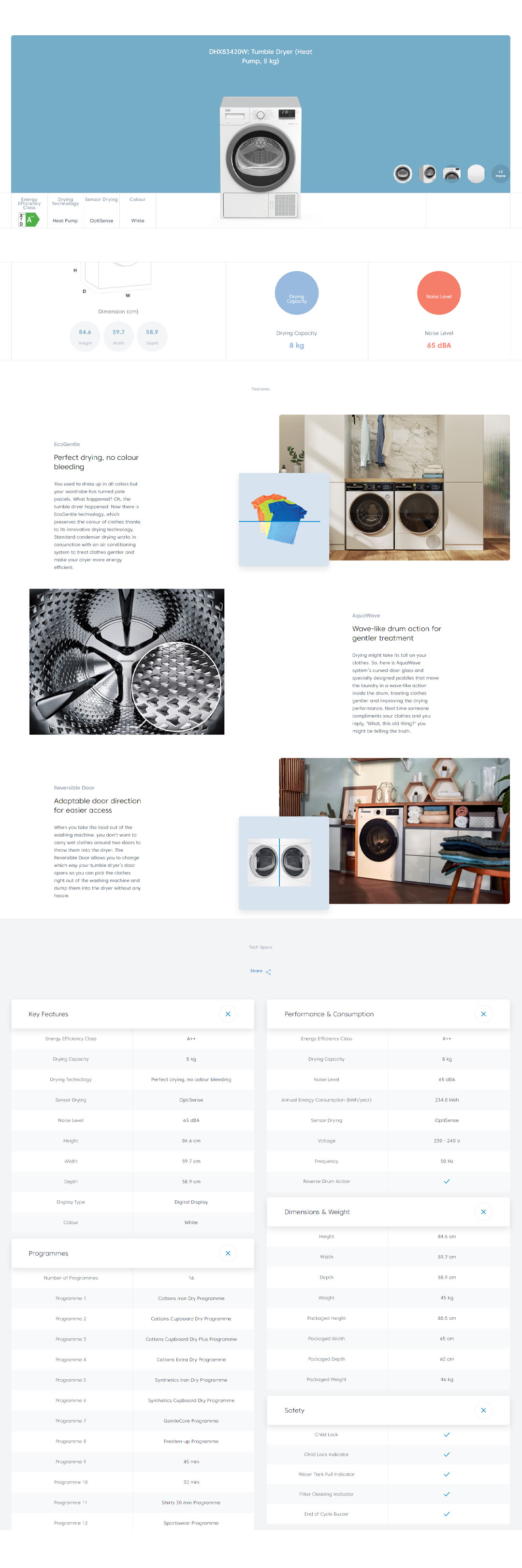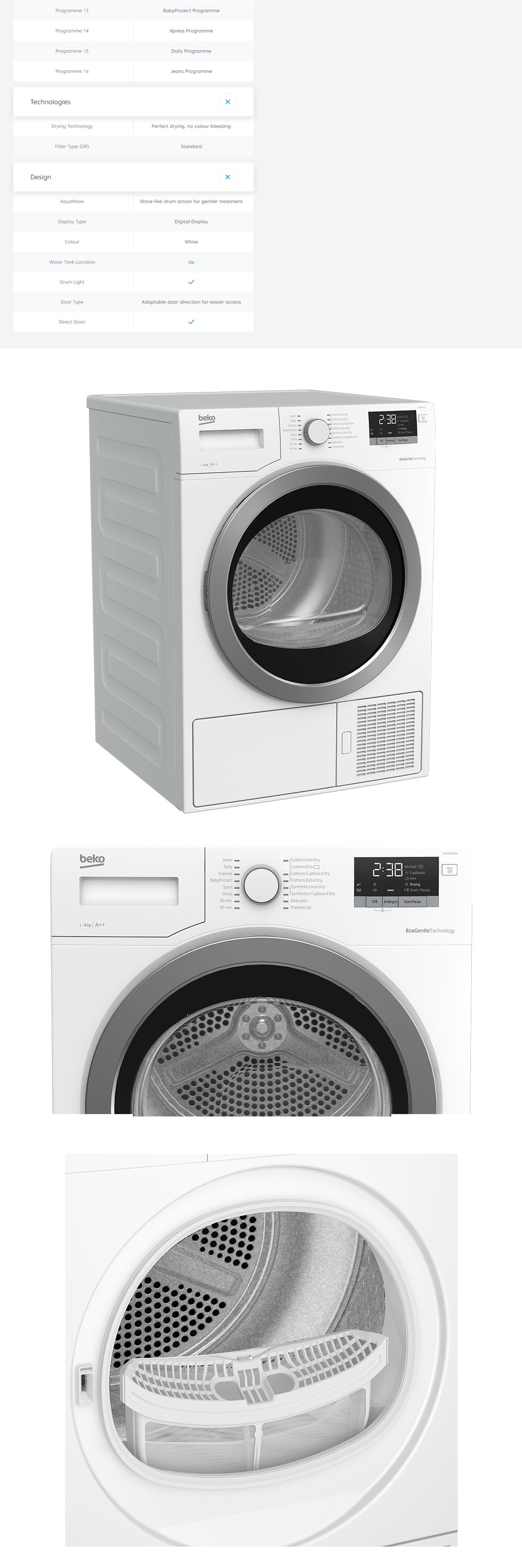 Beko 8KG Tumble Dryer DHX83420W | Child Lock | Digital Display | OptiSense | Reverse Drum Action | AquaWave | Tumble Dryer with 2 Year Warranty
