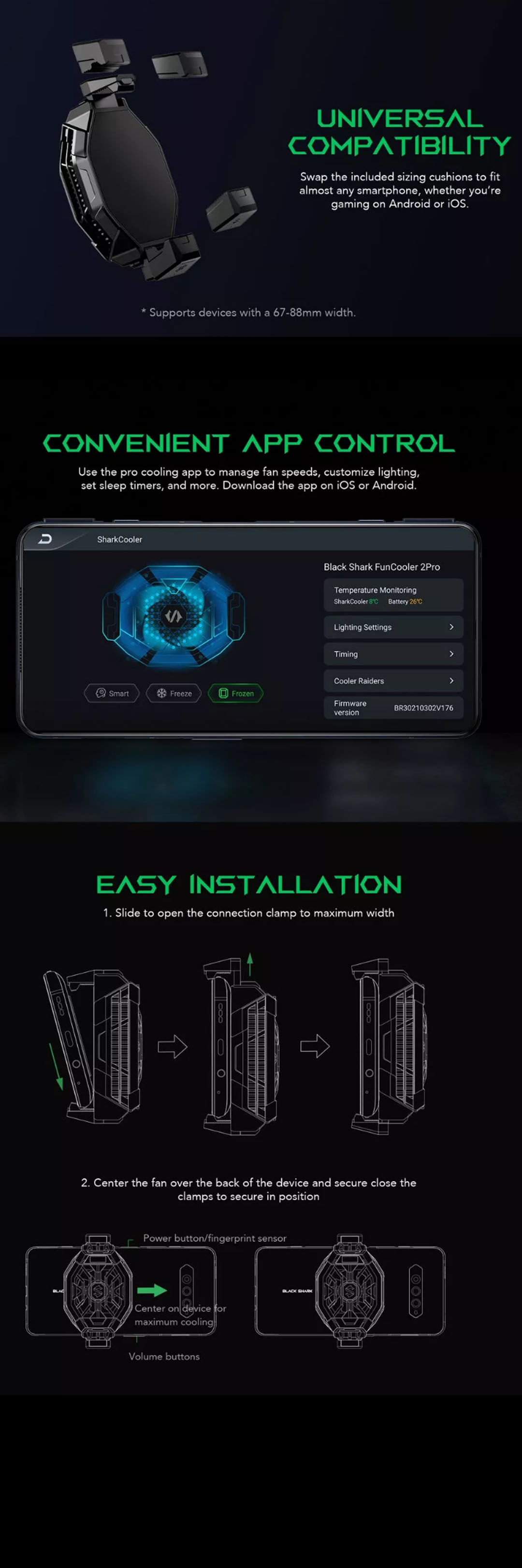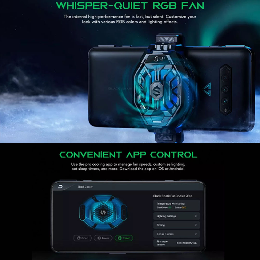 Black Shark FunCooler 2 Pro (Chinese Version) BR30-BS | Instant Cooling Power | Silent Operation | Lightning Effects | Mobile Accessories with 1 Year Warranty