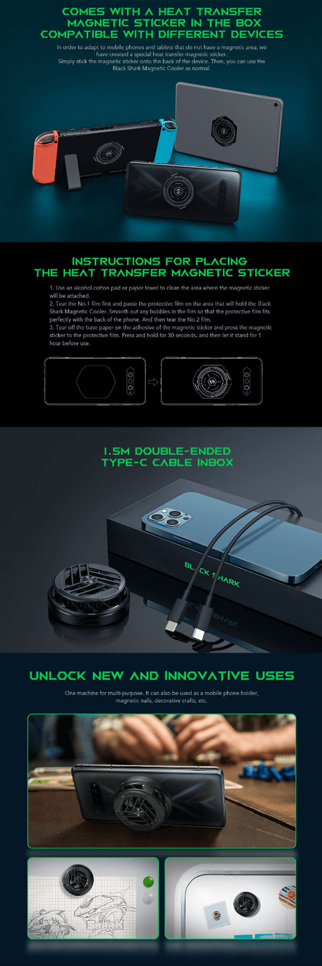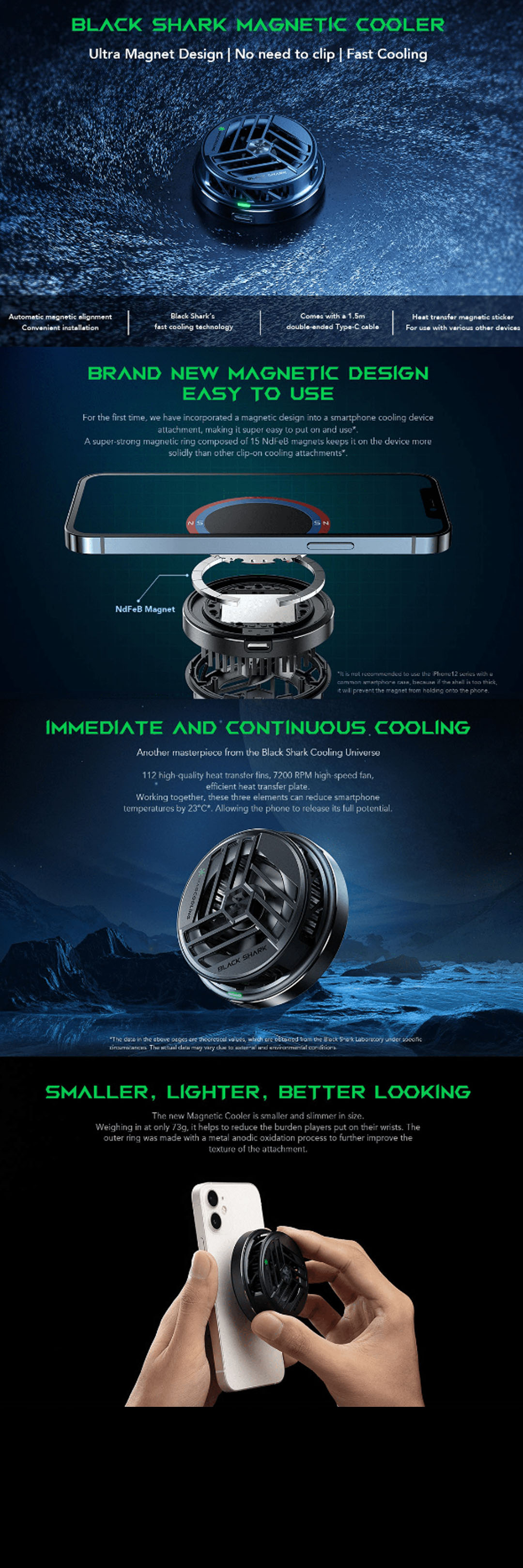Black Shark Magnetic Cooler (Chinese Version) BR30-AP | Multipurpose Used | Black Shark's Fast Cooling Technology | For Use with Various Devices |