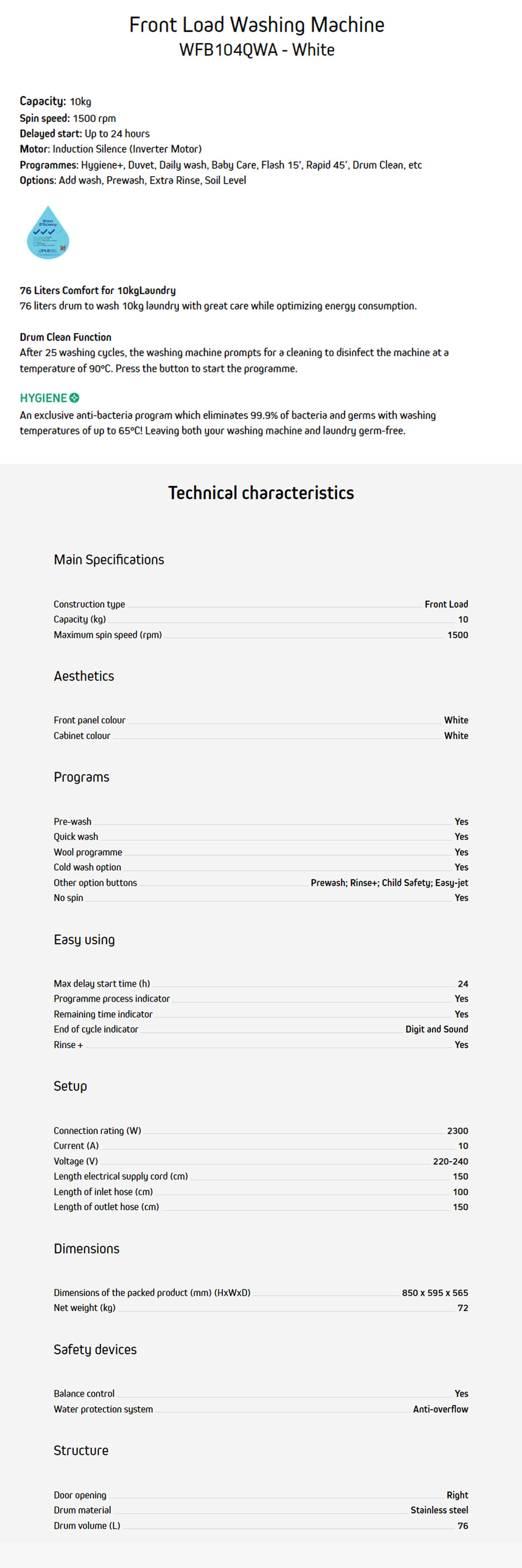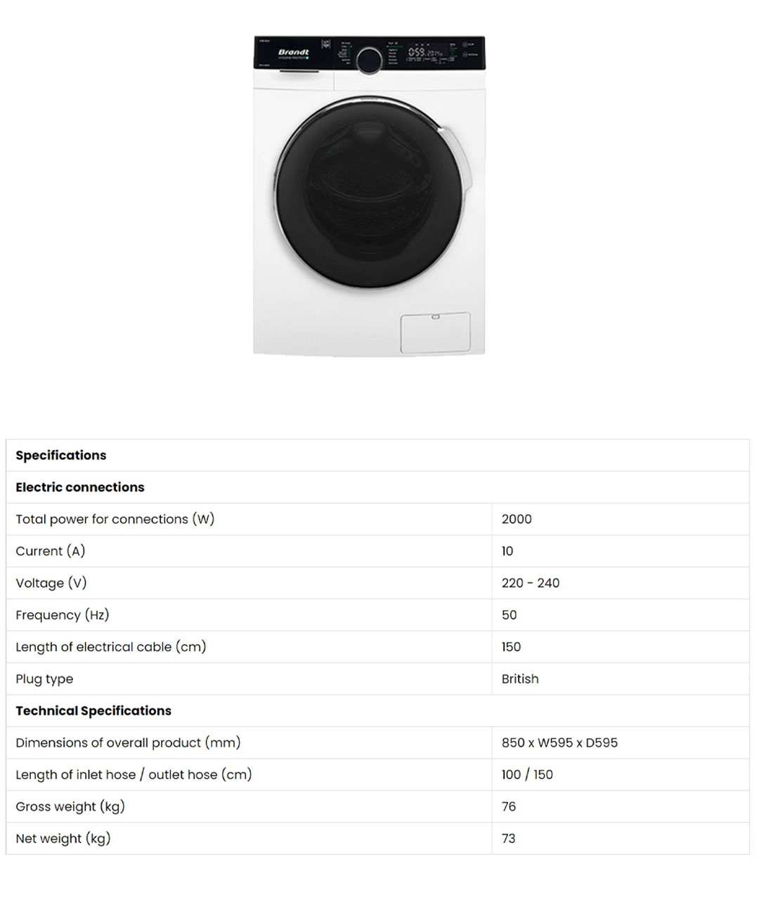 Brandt 10KG/12KG Front Load Inverter Washing Machine WFB104QWA/WFB126QWA | 14 Multi Programs | Anti Detergent Leak | Child Lock | Washing Machine with 1 Year Warranty
