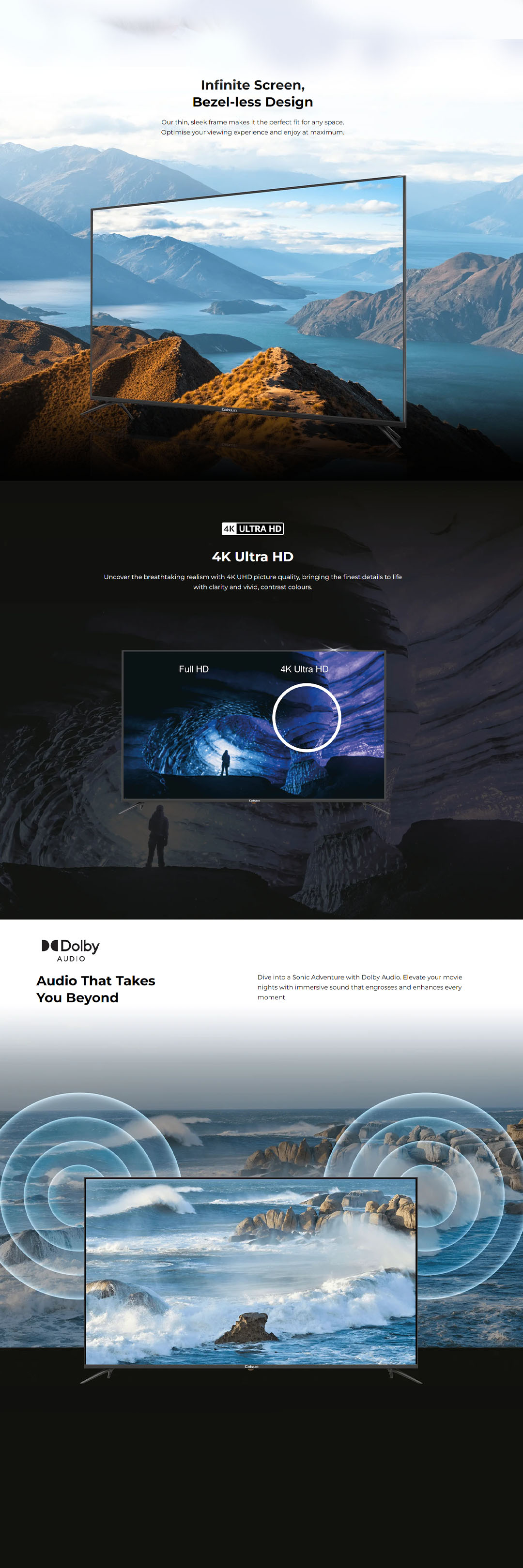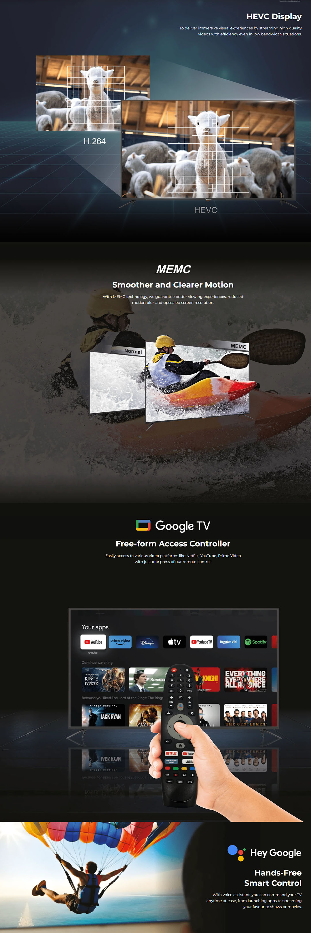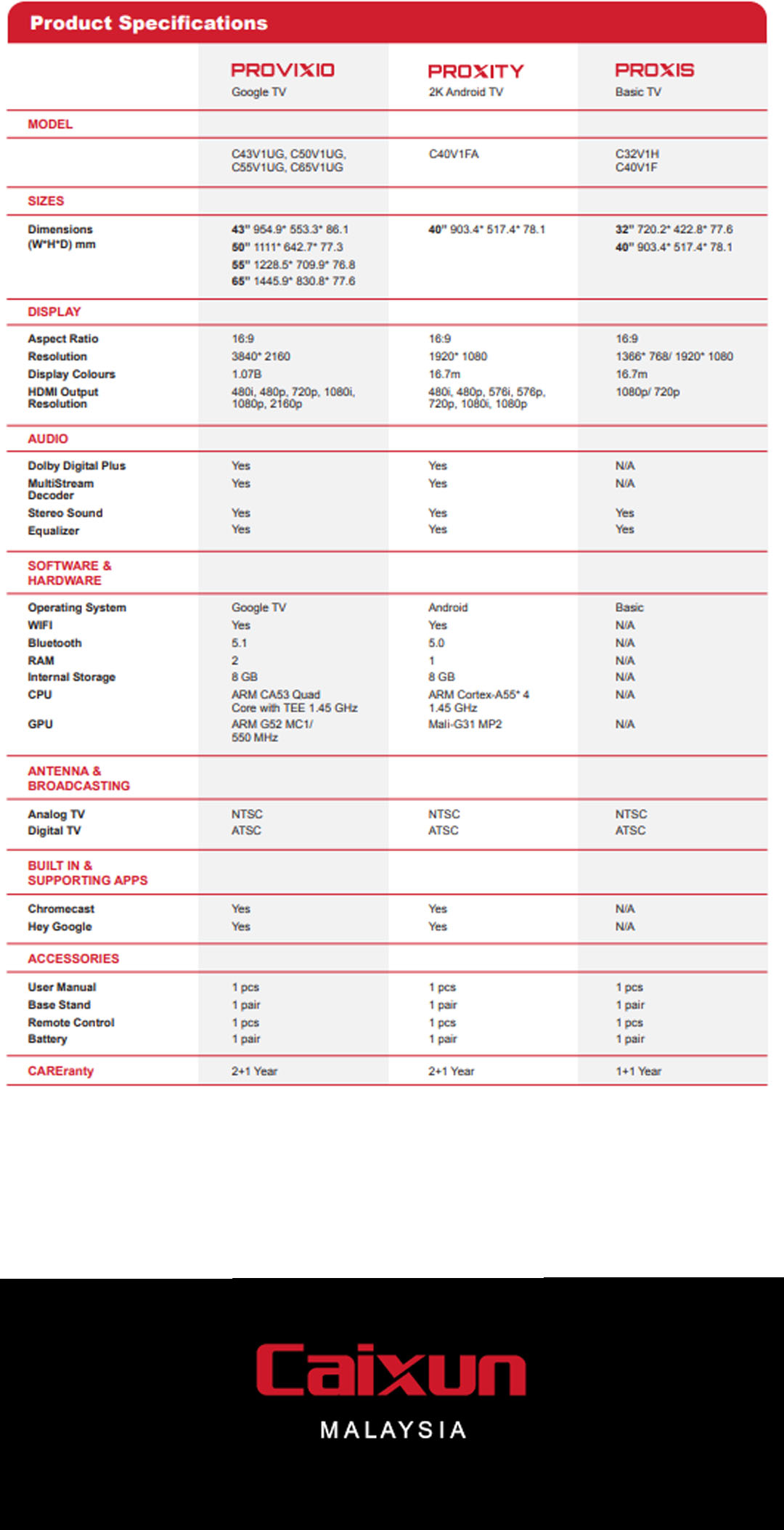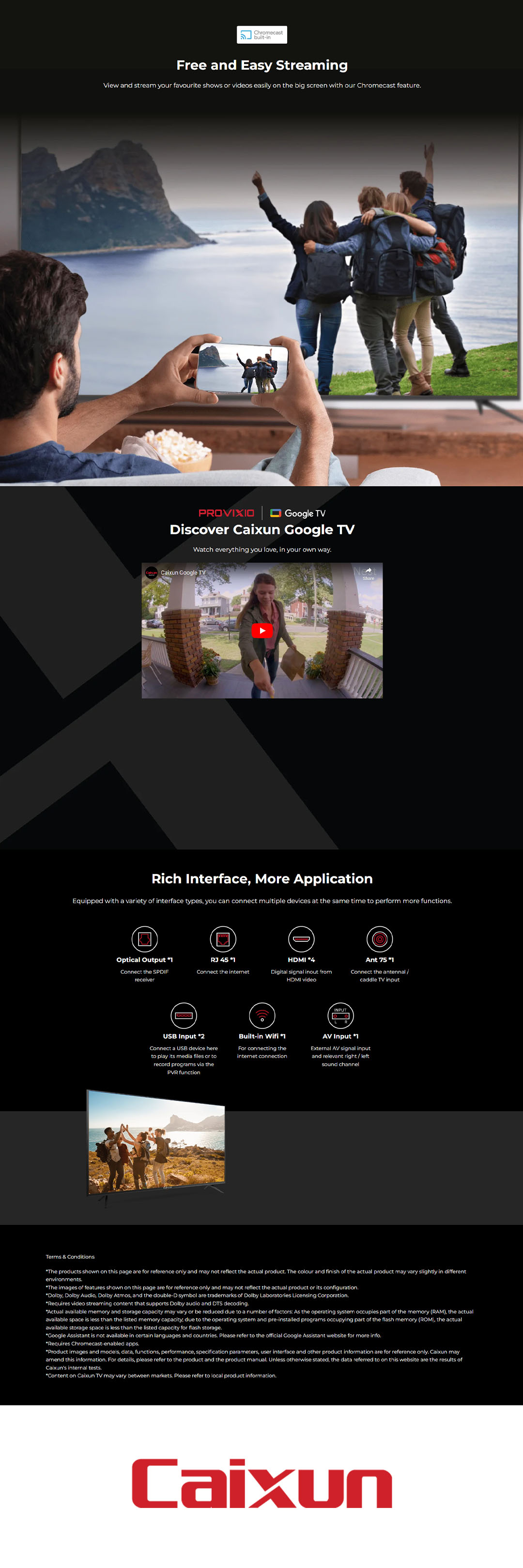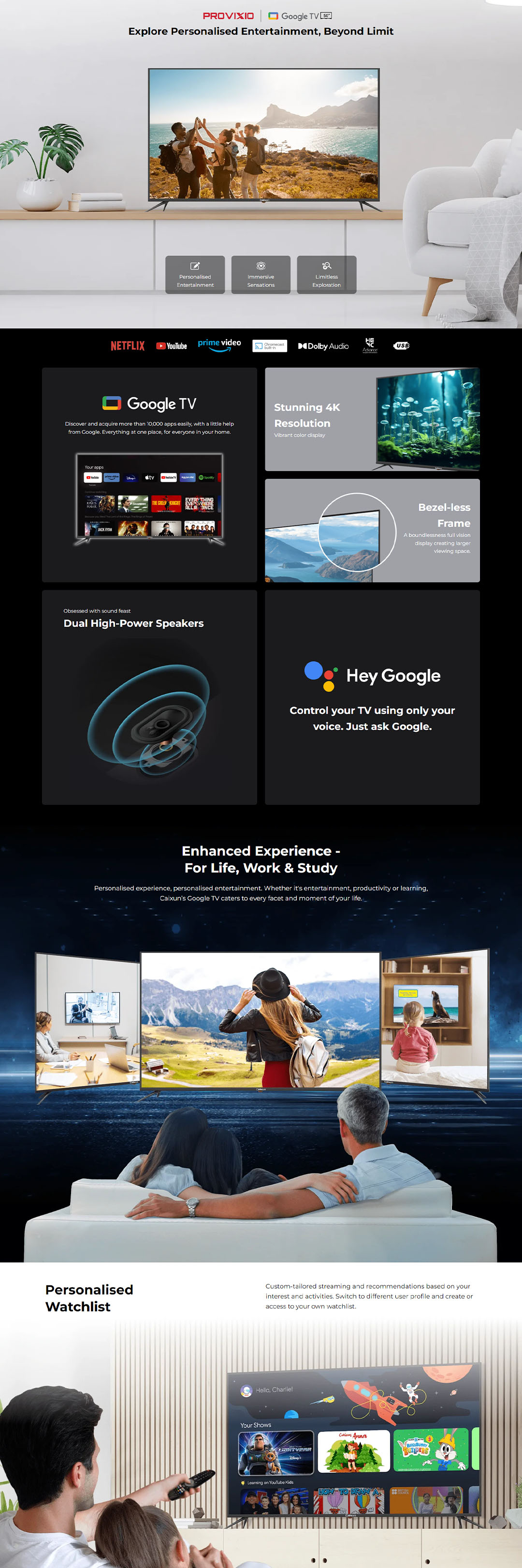 Caixun 43"/50"/55"/65" 4K LED Google TV (ProViXio) C43V1UG/C50V1UG/C55V1UG/C65V1UG | Dual High-Power Speakers | Stunning 4K Resolution | Bezel-less Frame | Smart TV with 3 Year Warranty