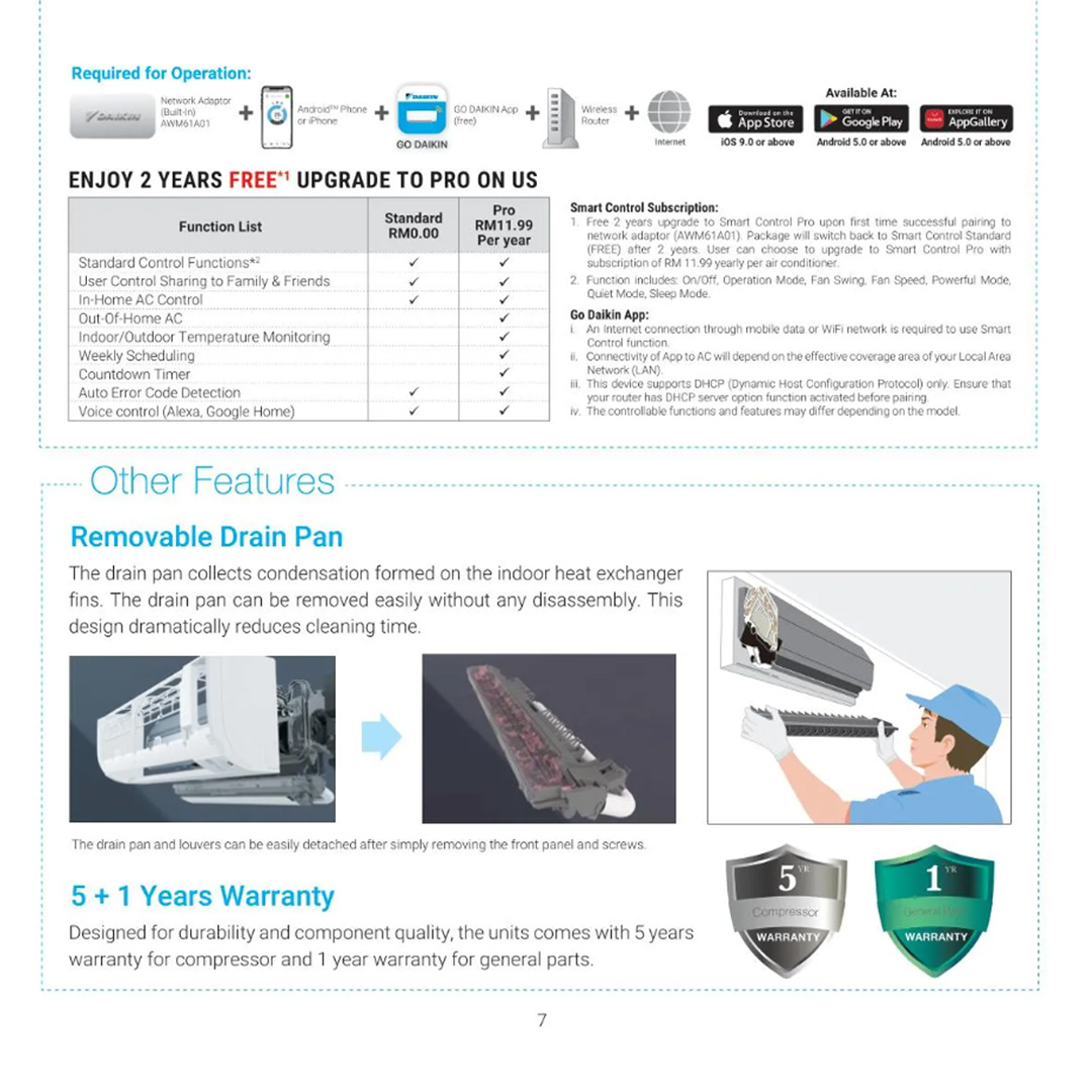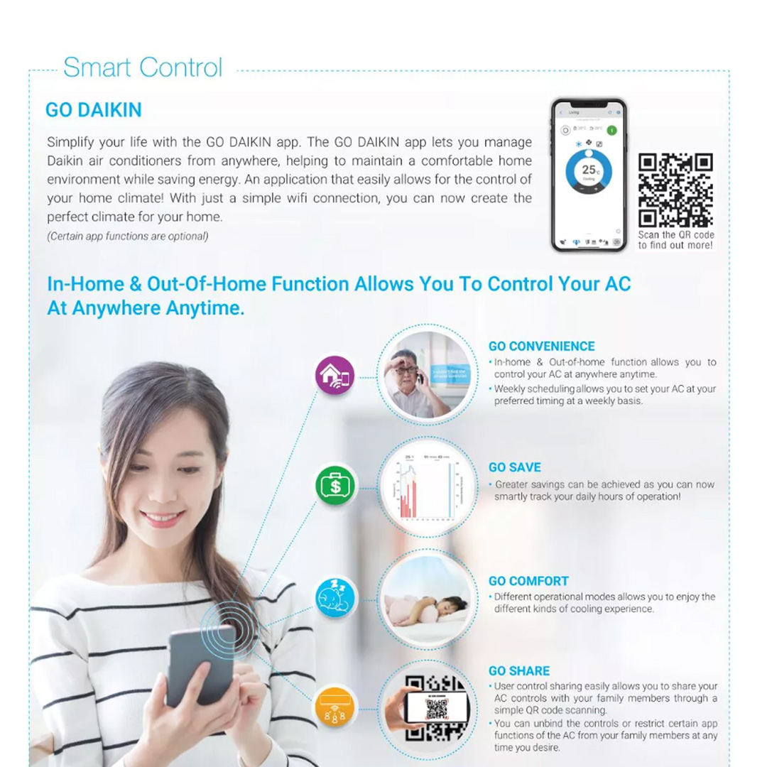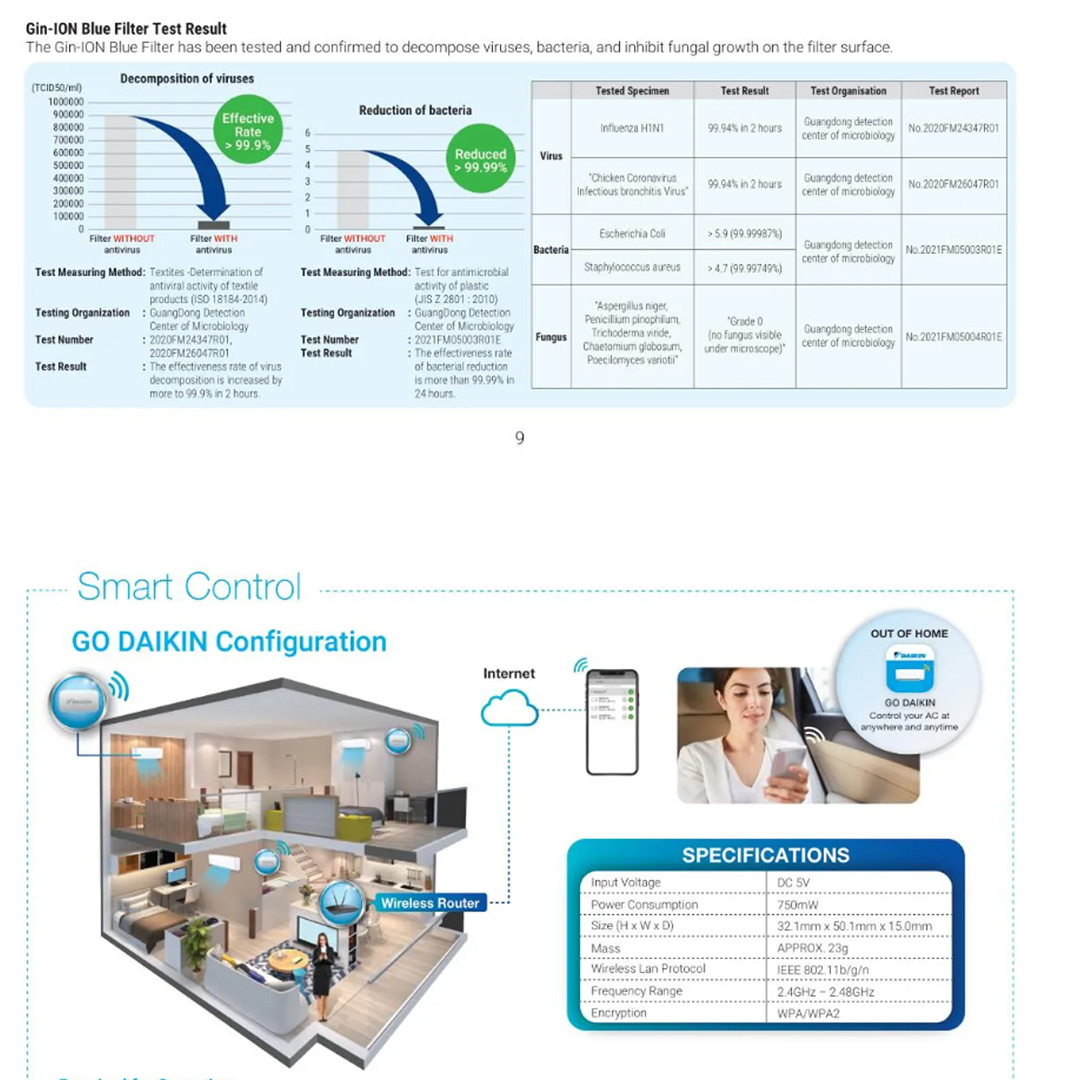 DAIKIN 1.5HP R32 Non-Inverter Wireless (WiFi, Built in WiFi) Wall Mount Air Conditioner FTV35PBV1MF-3WM-LF | Timer | Gin-Ion Blue Filter | Powerful Mode | Sleep Mode | Smart Control | Air Conditioner with 1 Year Warranty