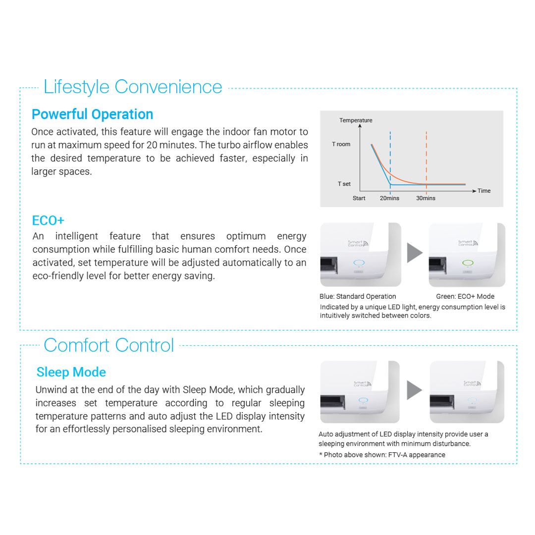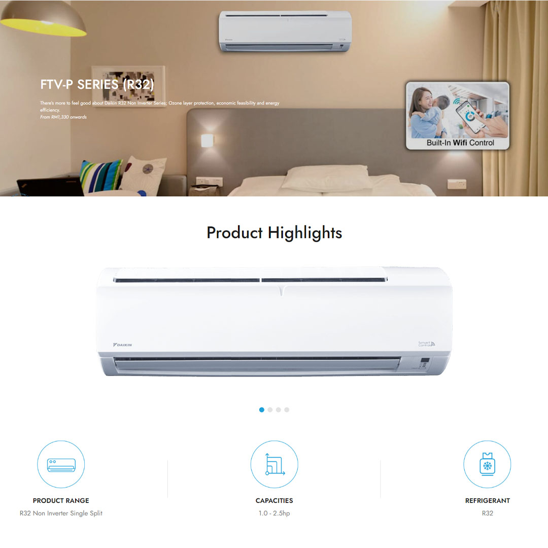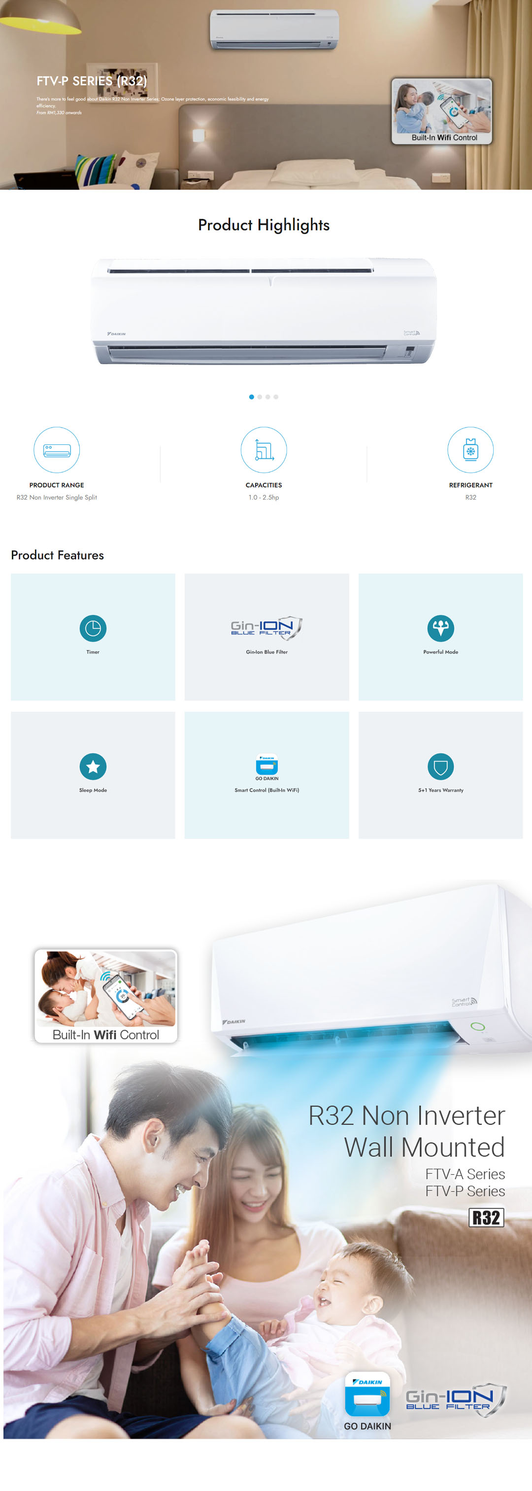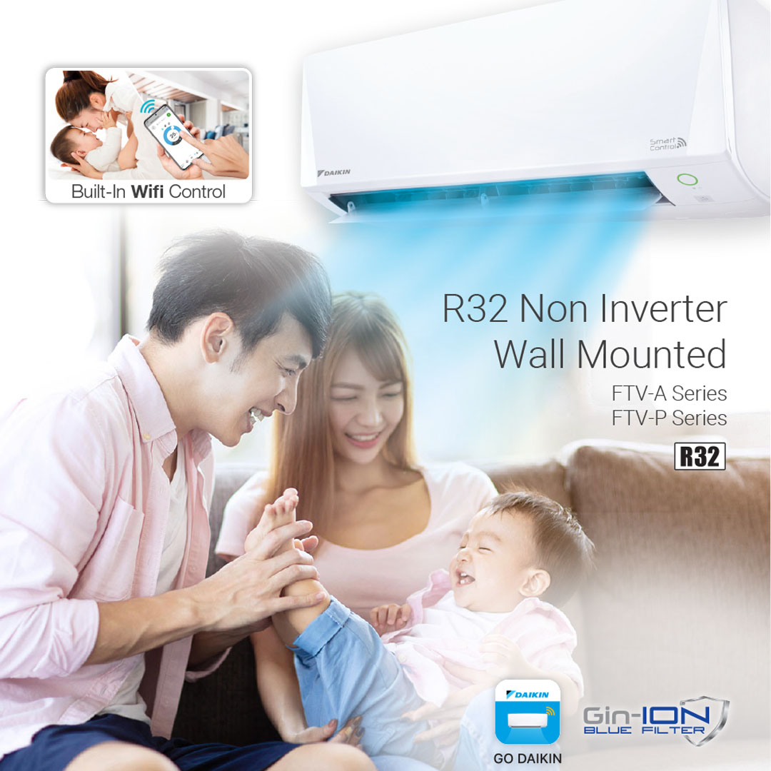 DAIKIN R32 Non-Inverter Wireless (WiFi,Built-in WiFi) Wall Mount Air Conditioner FTV-P Series | Sleep Mode | Powerful Mode | Timer | Gin-Ion Blue Filter | Smart Control | Air Conditioner with 1 Year Warranty