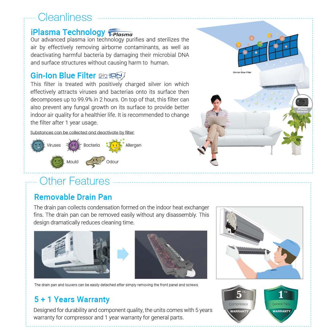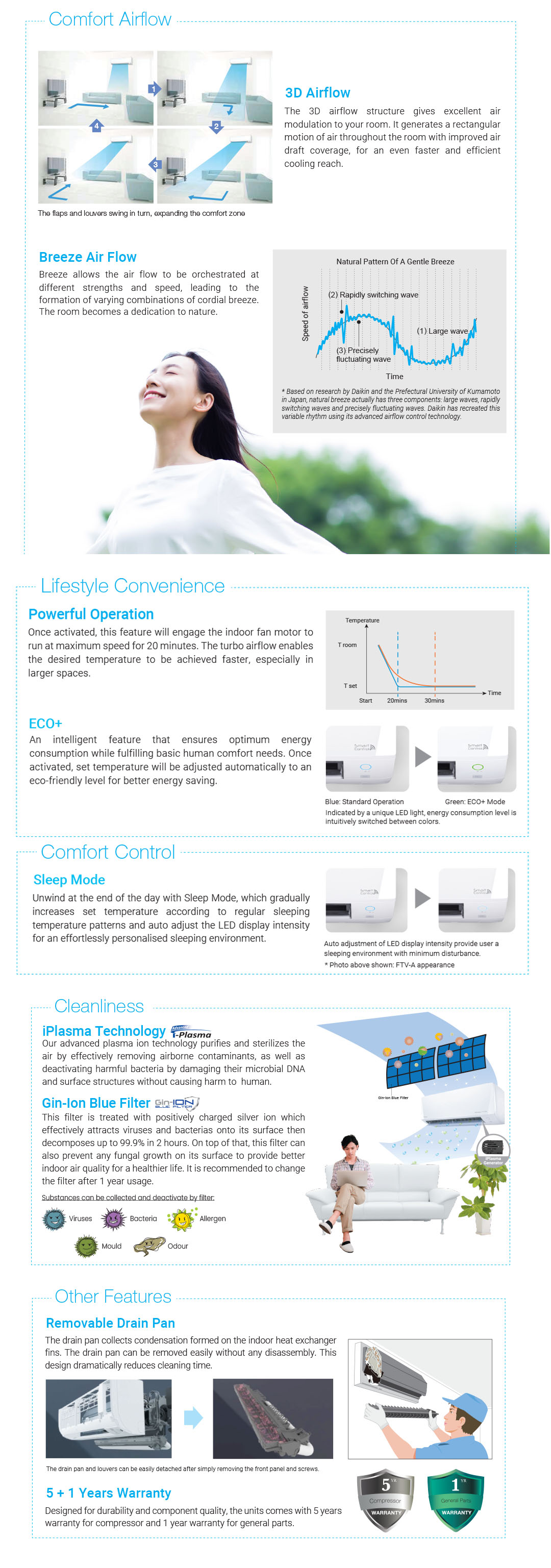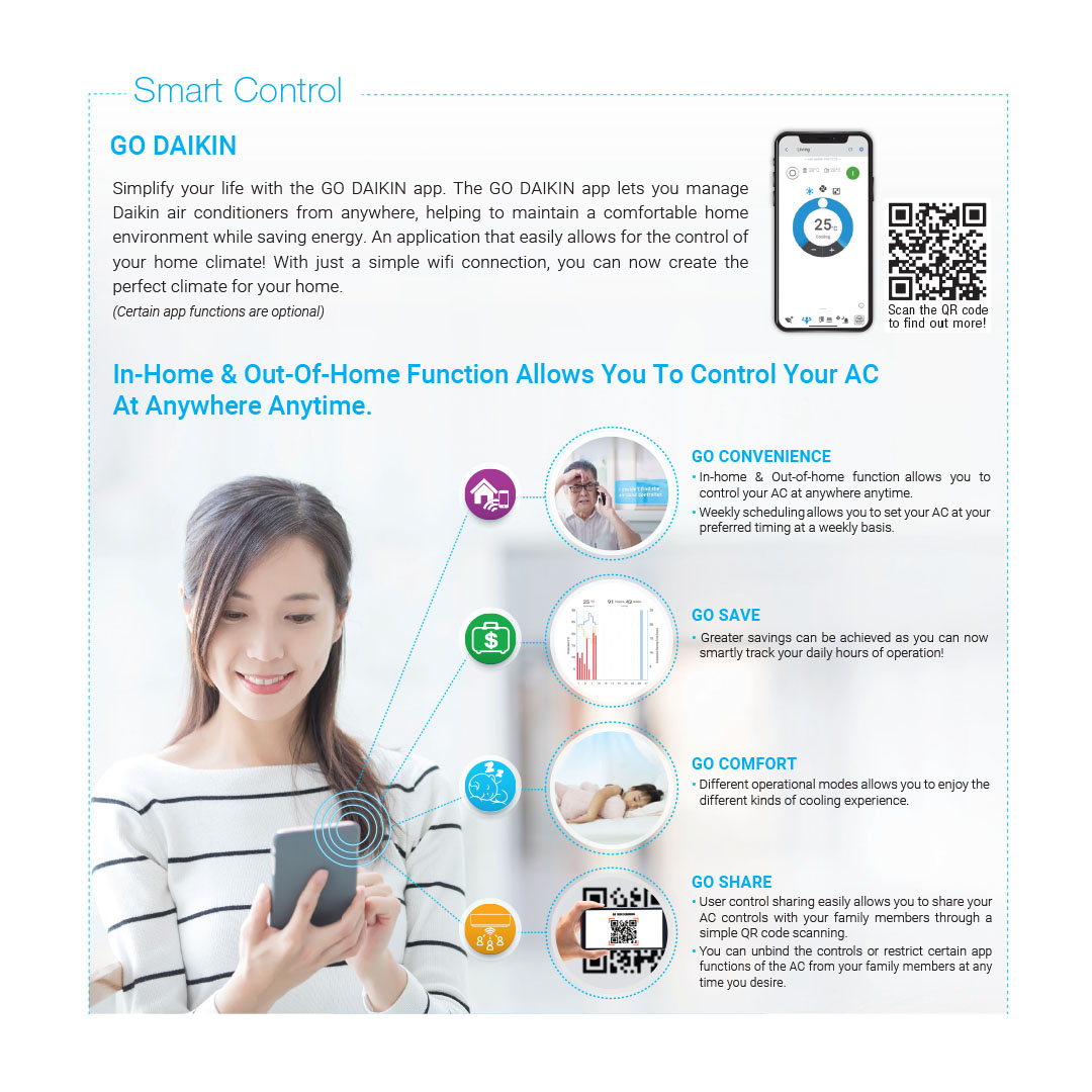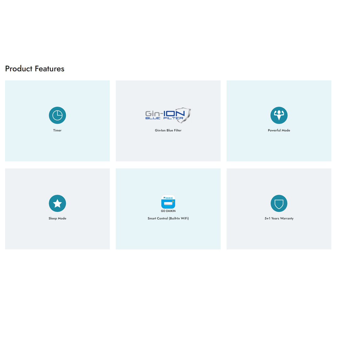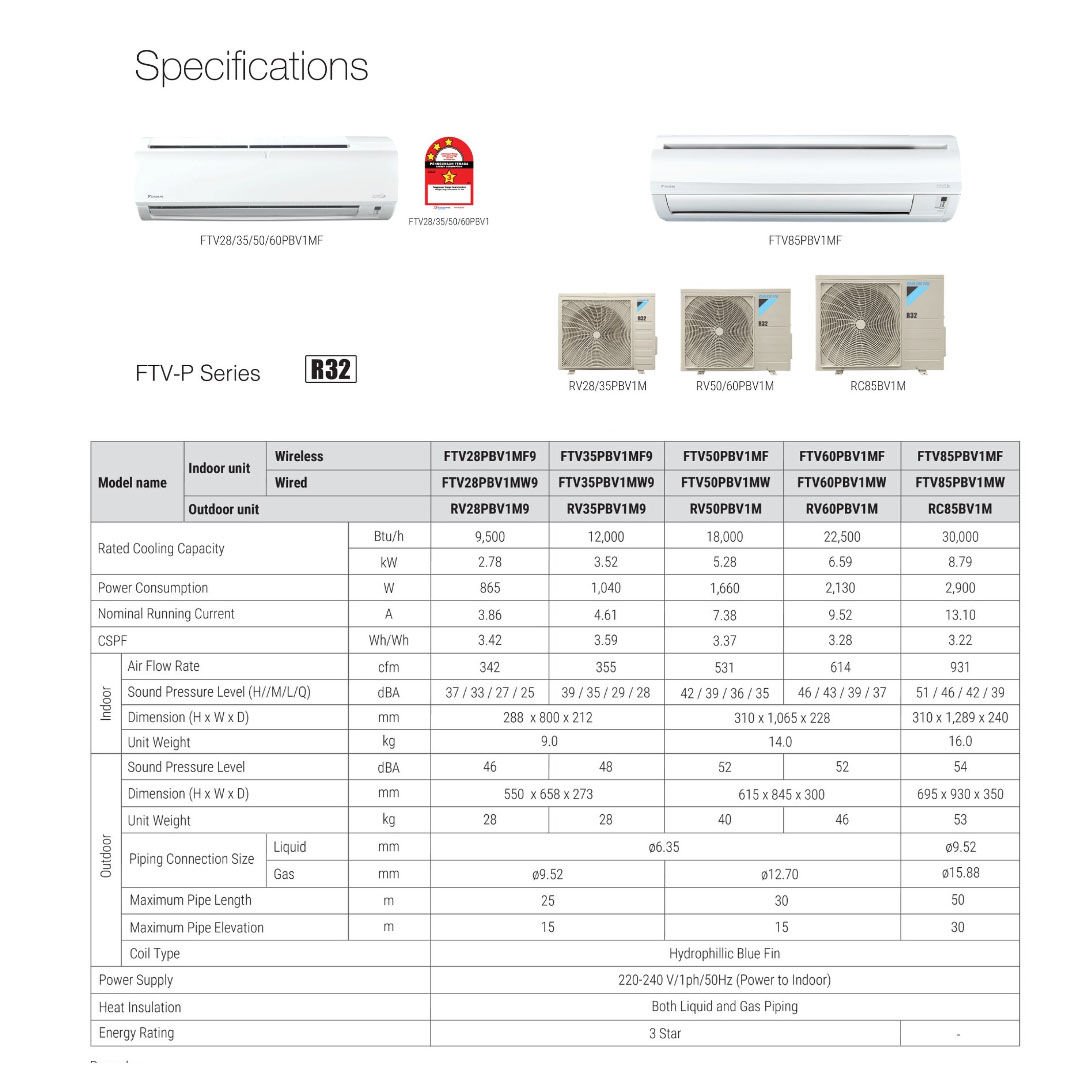 DAIKIN R32 Non-Inverter Wireless (WiFi,Built-in WiFi) Wall Mount Air Conditioner FTV-P Series | Sleep Mode | Powerful Mode | Timer | Gin-Ion Blue Filter | Smart Control | Air Conditioner with 1 Year Warranty