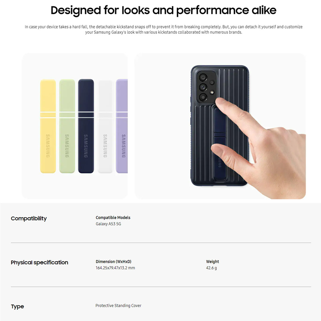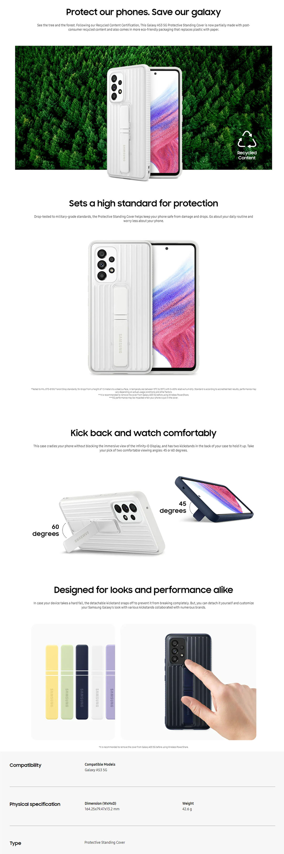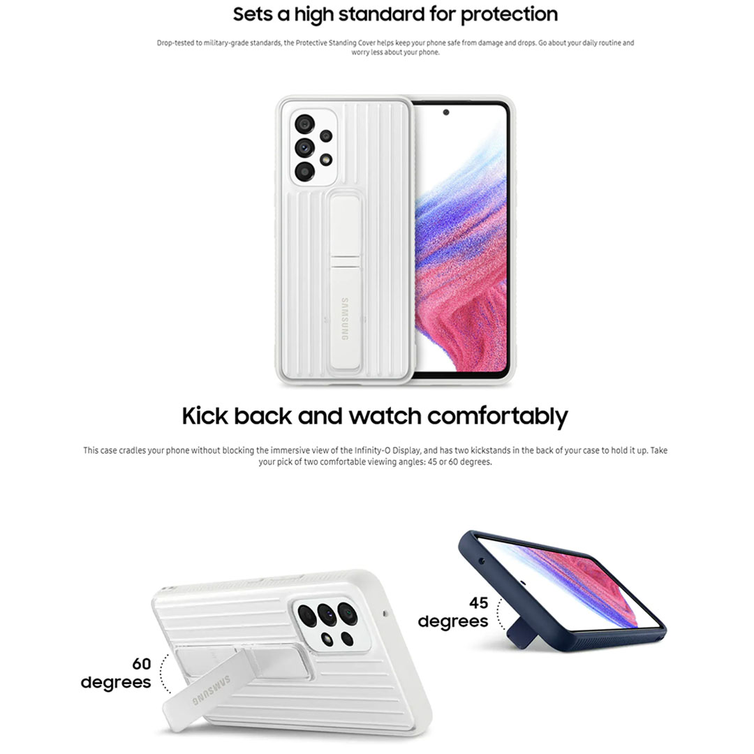 SAMSUNG Galaxy A53 5G Protective Standing Cover EF-RA536CWEGW / EF-RA536CWEGWW | Heavy Duty Device Protection | Special hinge Angle For All Purpose | Kick Back and Watch Comfortably |