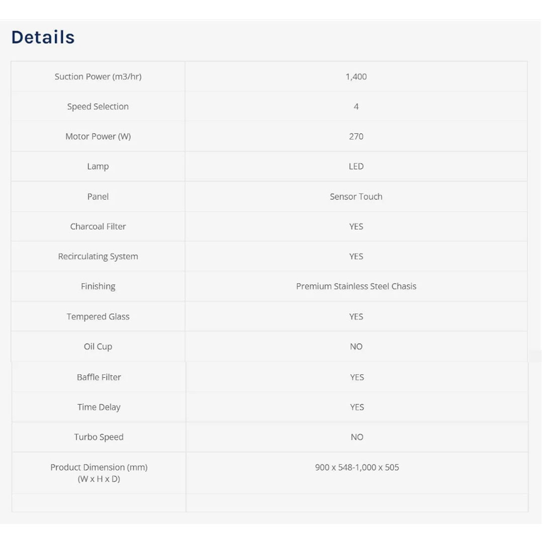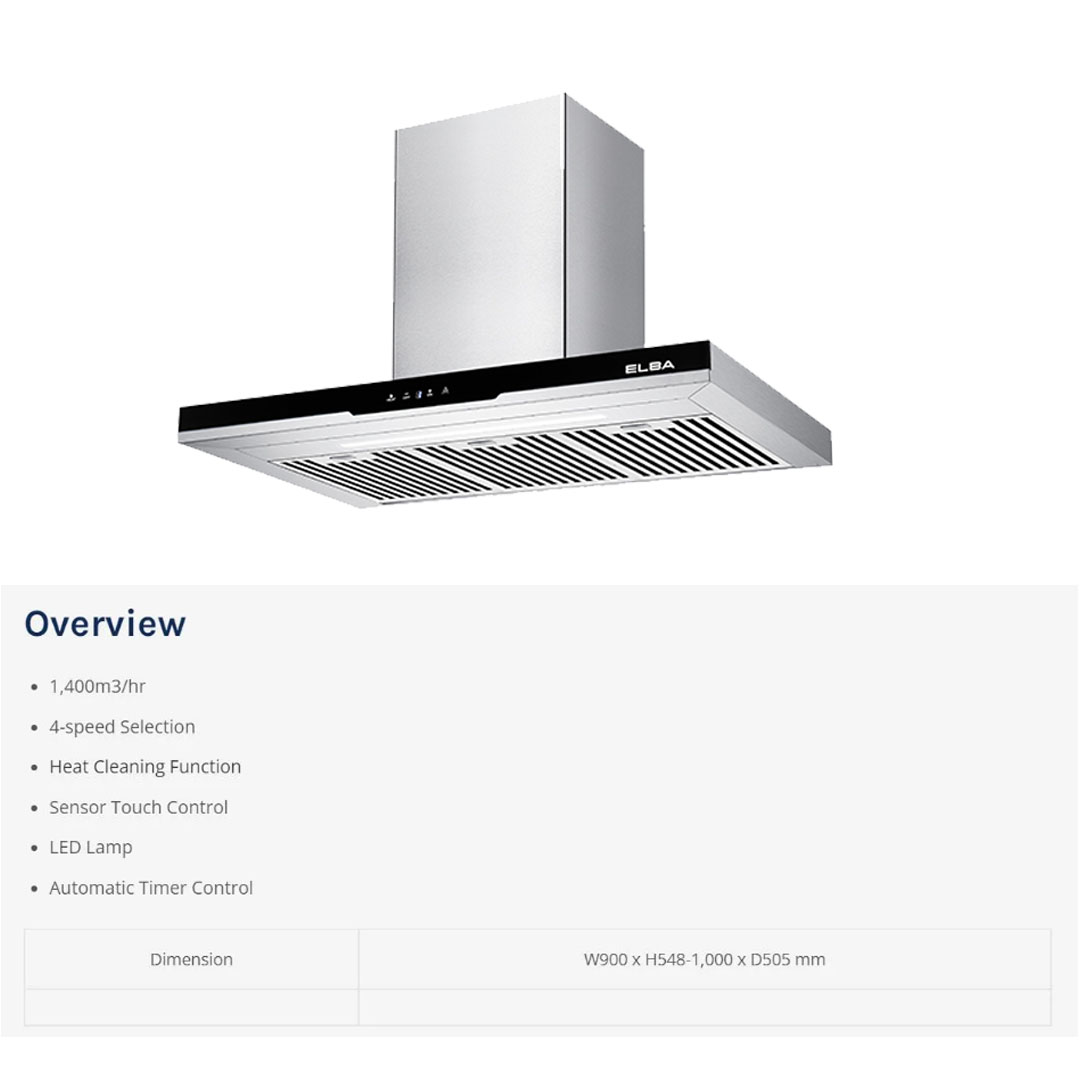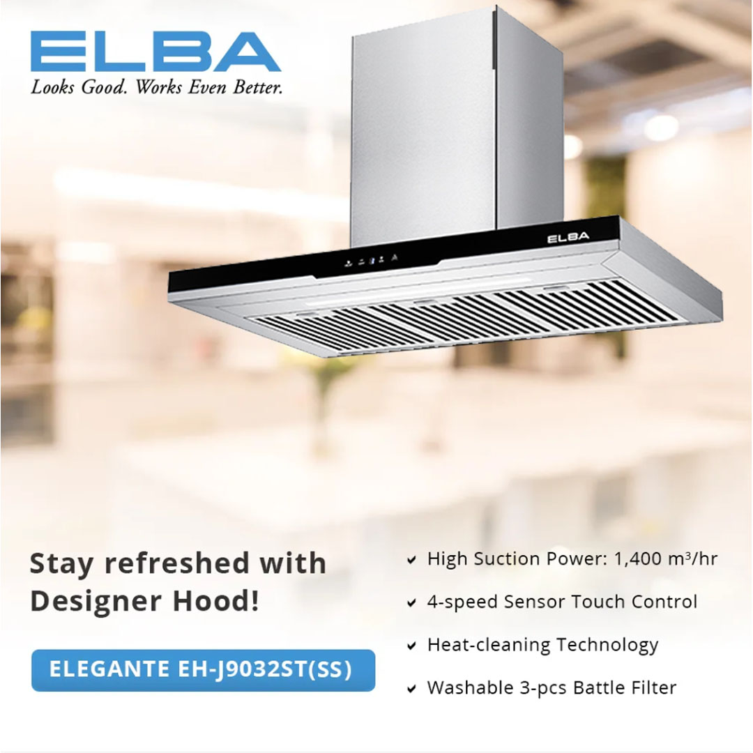 ELBA 1,400m3/hr Elegante Hood EH-J9031ST(SS) | 4-speed Selection | Heat Cleaning Function | Sensor Touch Control | Hood with 1 Year General Warranty & 5 Years Motor Warranty