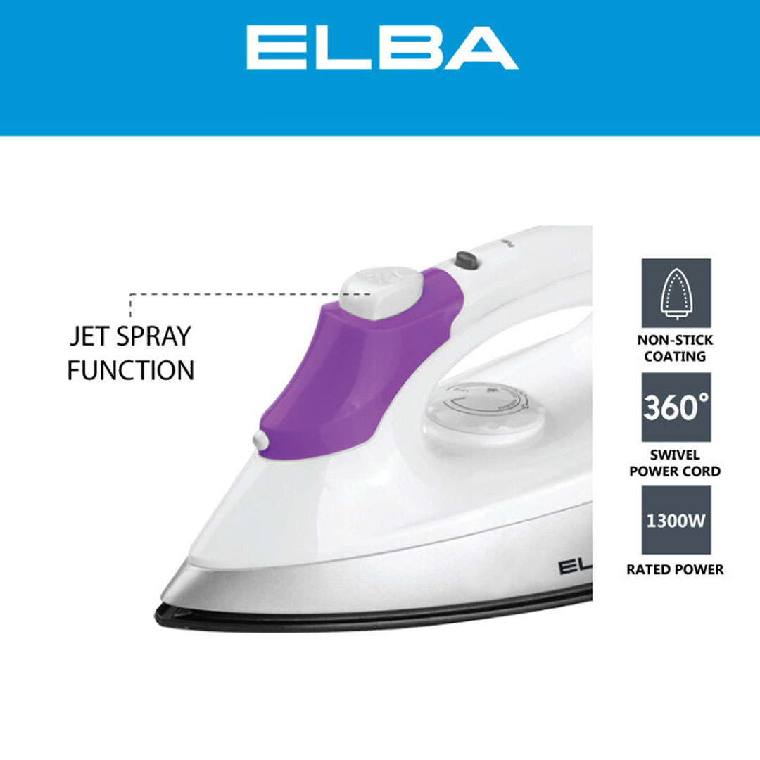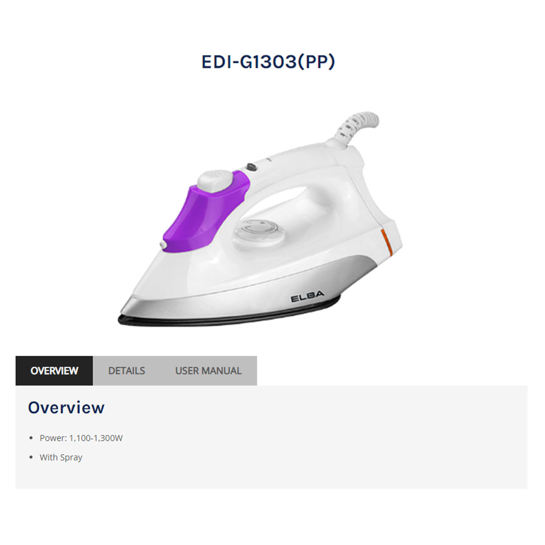 ELBA 1300W Steam Iron EDI-G1303(PP) | With Spray | Non-Stick Coating Soleplate | Light Indicator | Iron with 1 Year Warranty