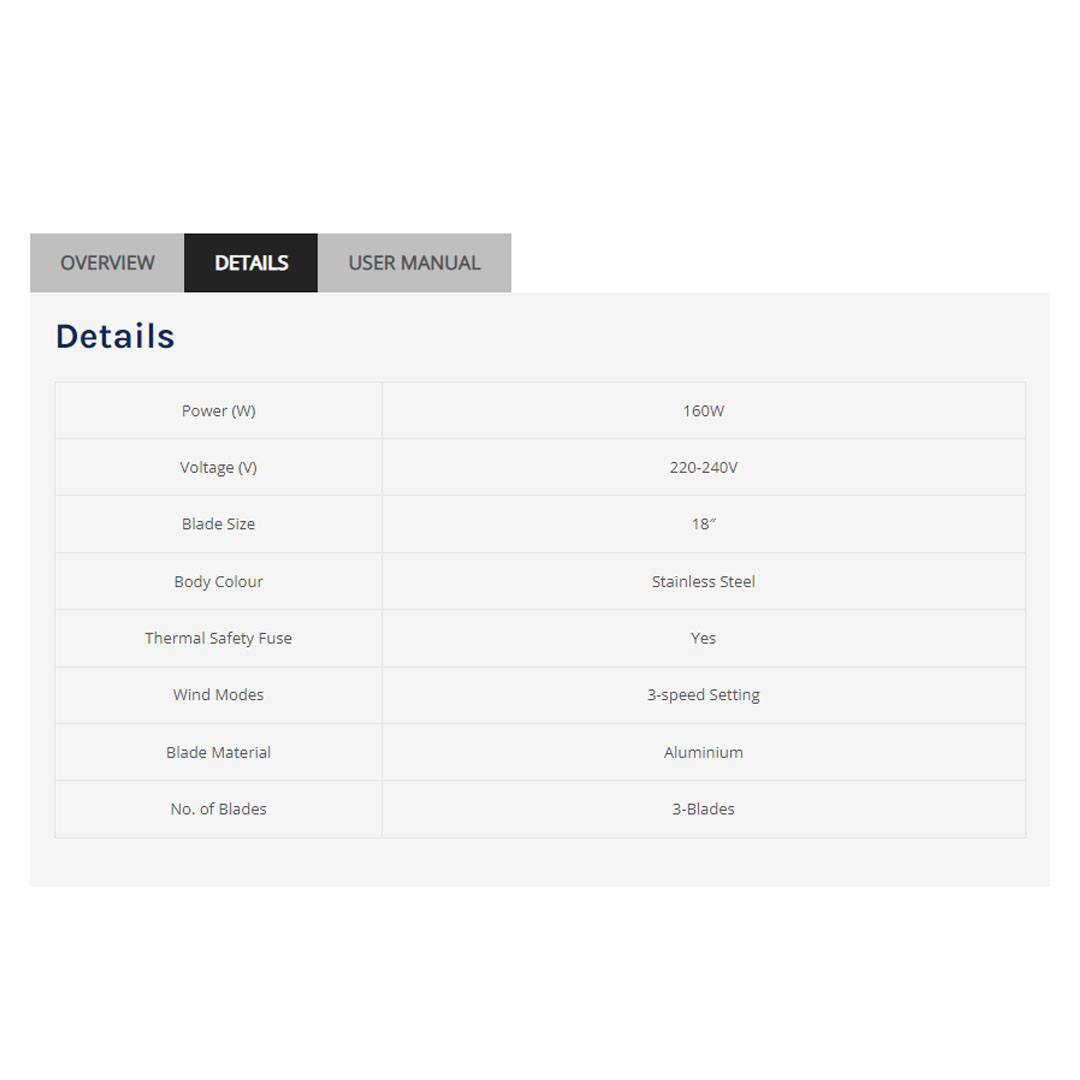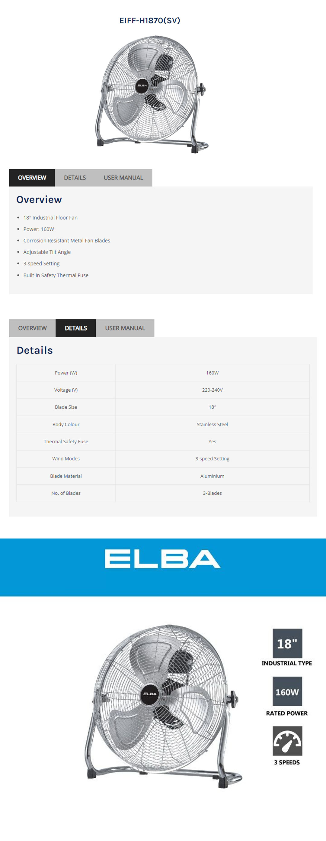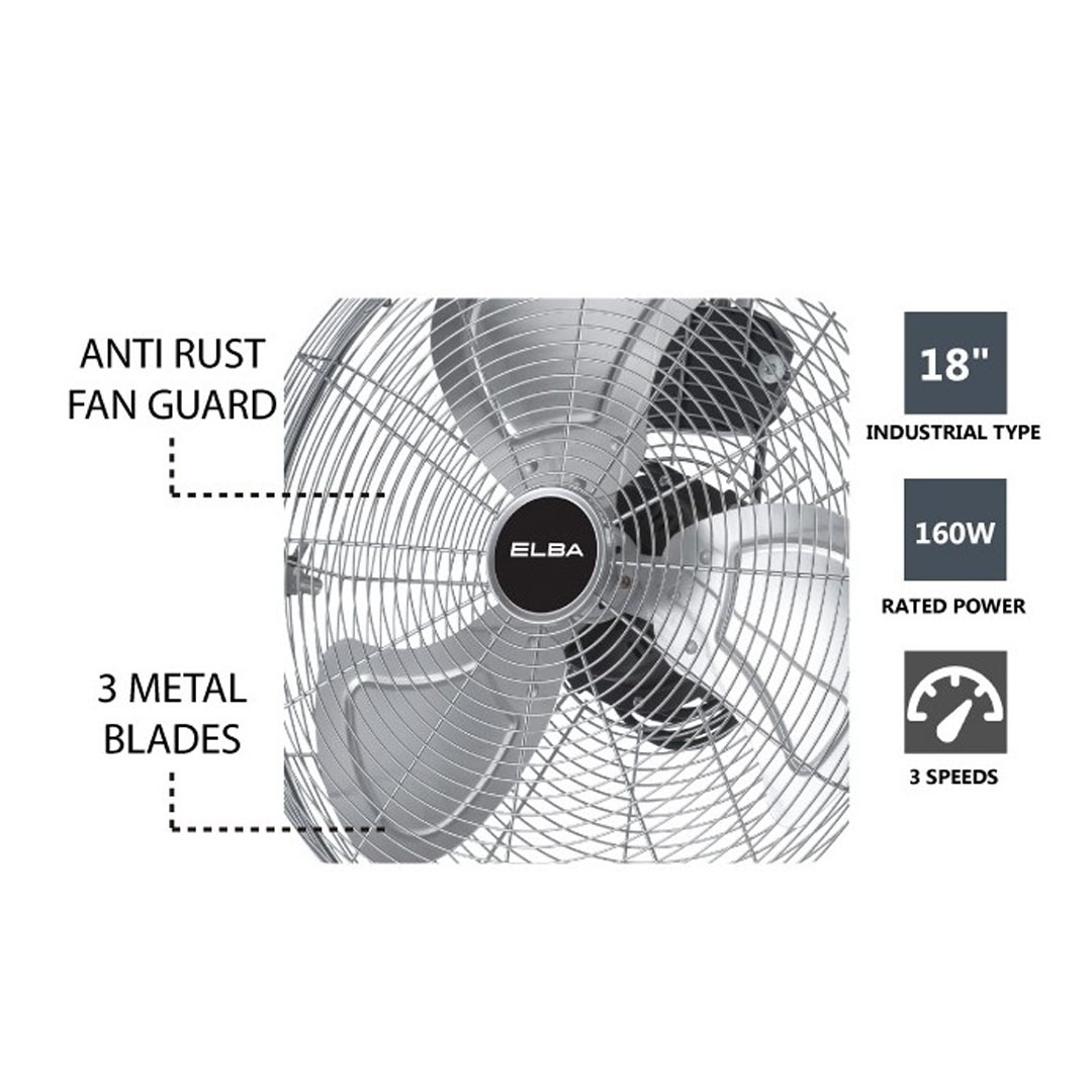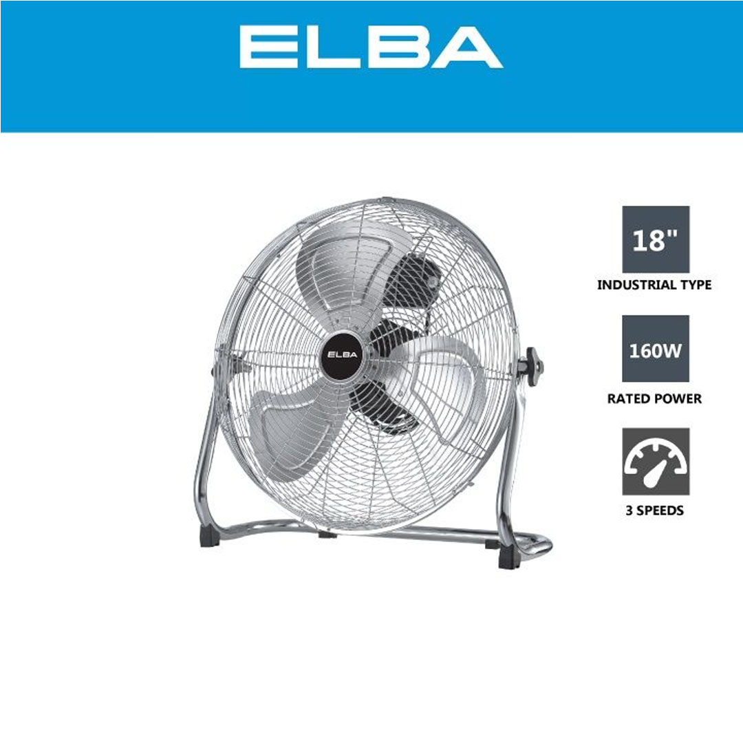 ELBA 18" Industrial Floor Fan EIFF-H1870(SV) | Adjustable Tilt Angle | 3-speed Setting | Built-in Safety Thermal Fuse | Power: 160W | Floor Fan with 1 Year Warranty