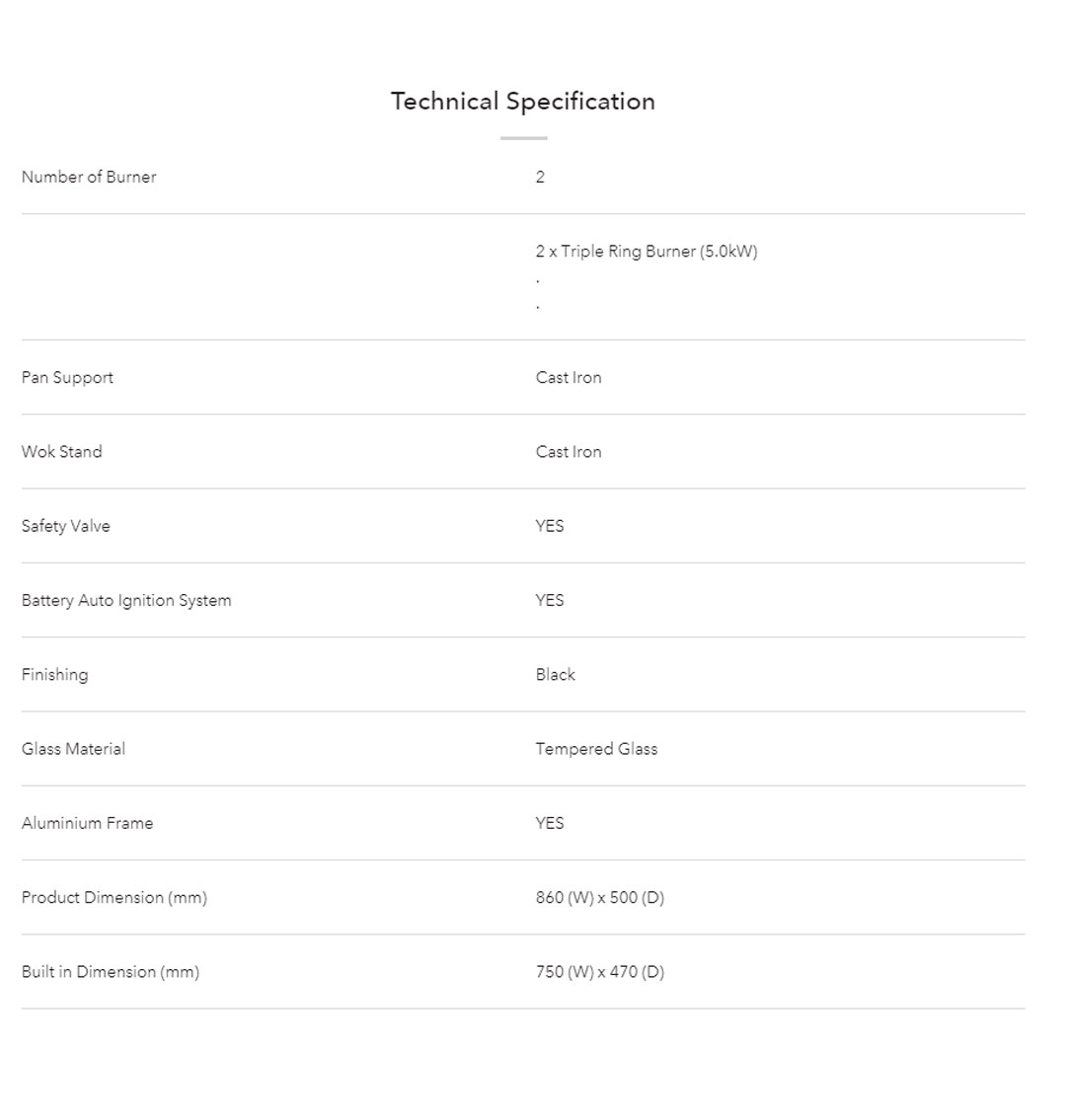 ELBA 2 Burners Built-In Glass Hob EGH-E9502G(BK) | Elegant Design | Safety Valve | Embraced Aluminium Frame Protection | Hob with 1 Year Warranty